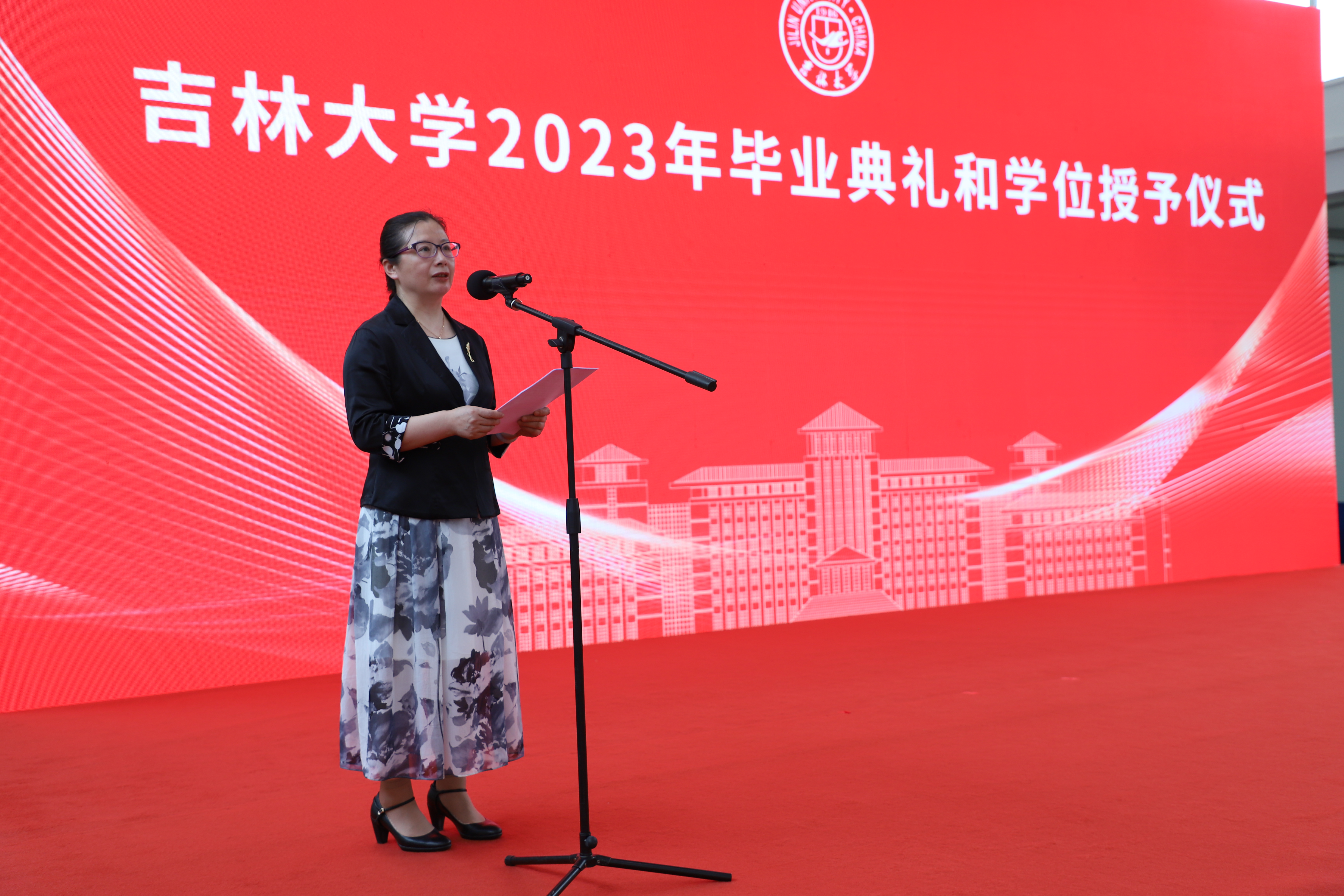 最后,院长嵇艳鞠教授致辞,她对返回母校参加典礼的往届毕业生和远道而来的家长表示热烈的欢迎,对2023届全体毕业生顺利完成学业、即将踏上新征途表示衷心的祝贺,并向他们的父母和教师表达深深的敬意。在离别之际,她为即将踏入新征程的毕业同学提出四点希望:一是永葆一颗进取之心,脚踏实地,追求卓越;二是坚守一颗责任之心,甘于奉献,勇于担当;三是修炼一颗豁达之心,热爱生活,达观处事;四是常怀一颗感恩之心,心存大爱,饮水思源。嵇艳鞠院长深情寄语,母校永远是同学们的坚强后盾和心灵家园,祝全体毕业生前程似锦,平安幸福,创造出更精彩的篇章。