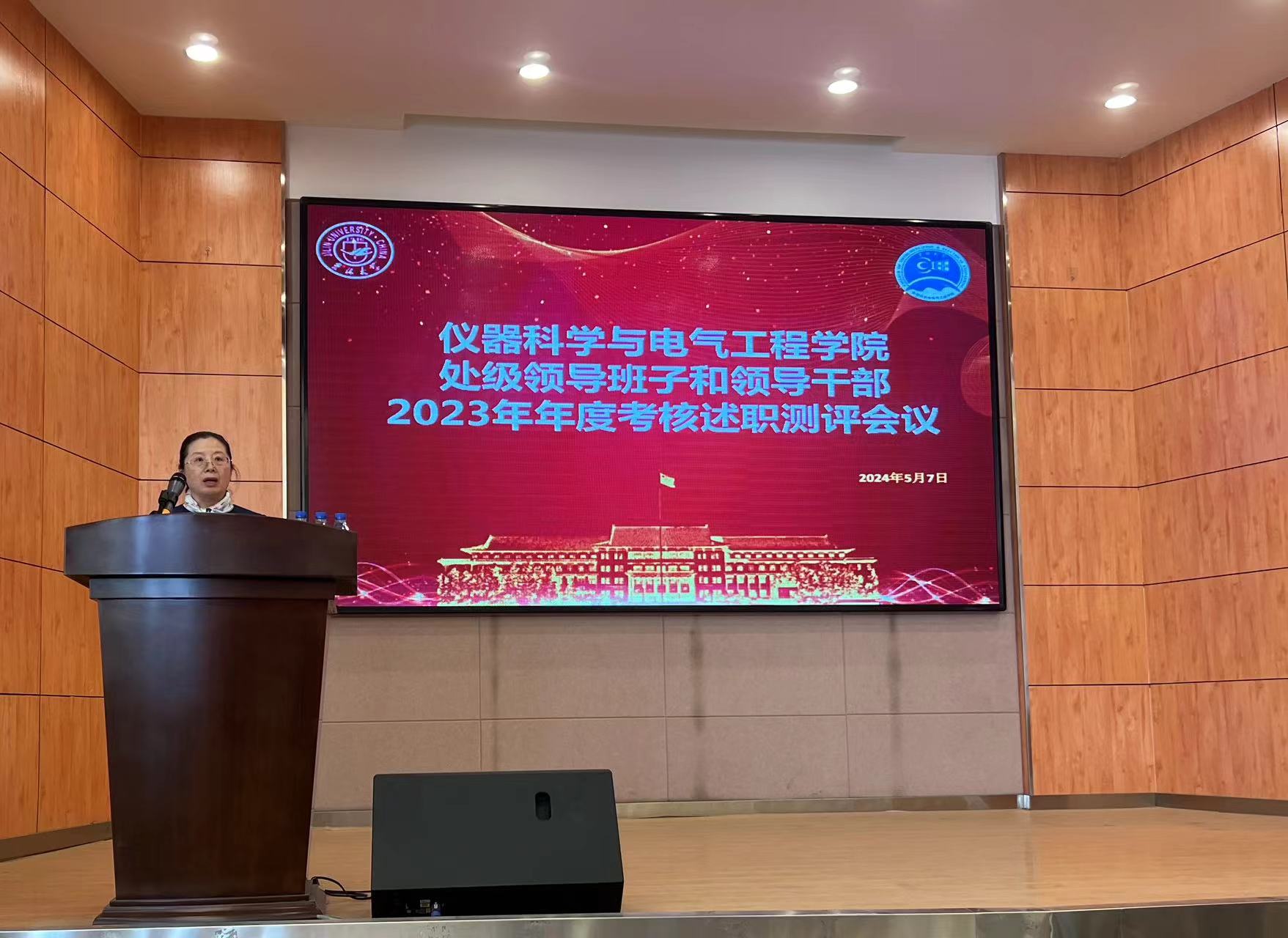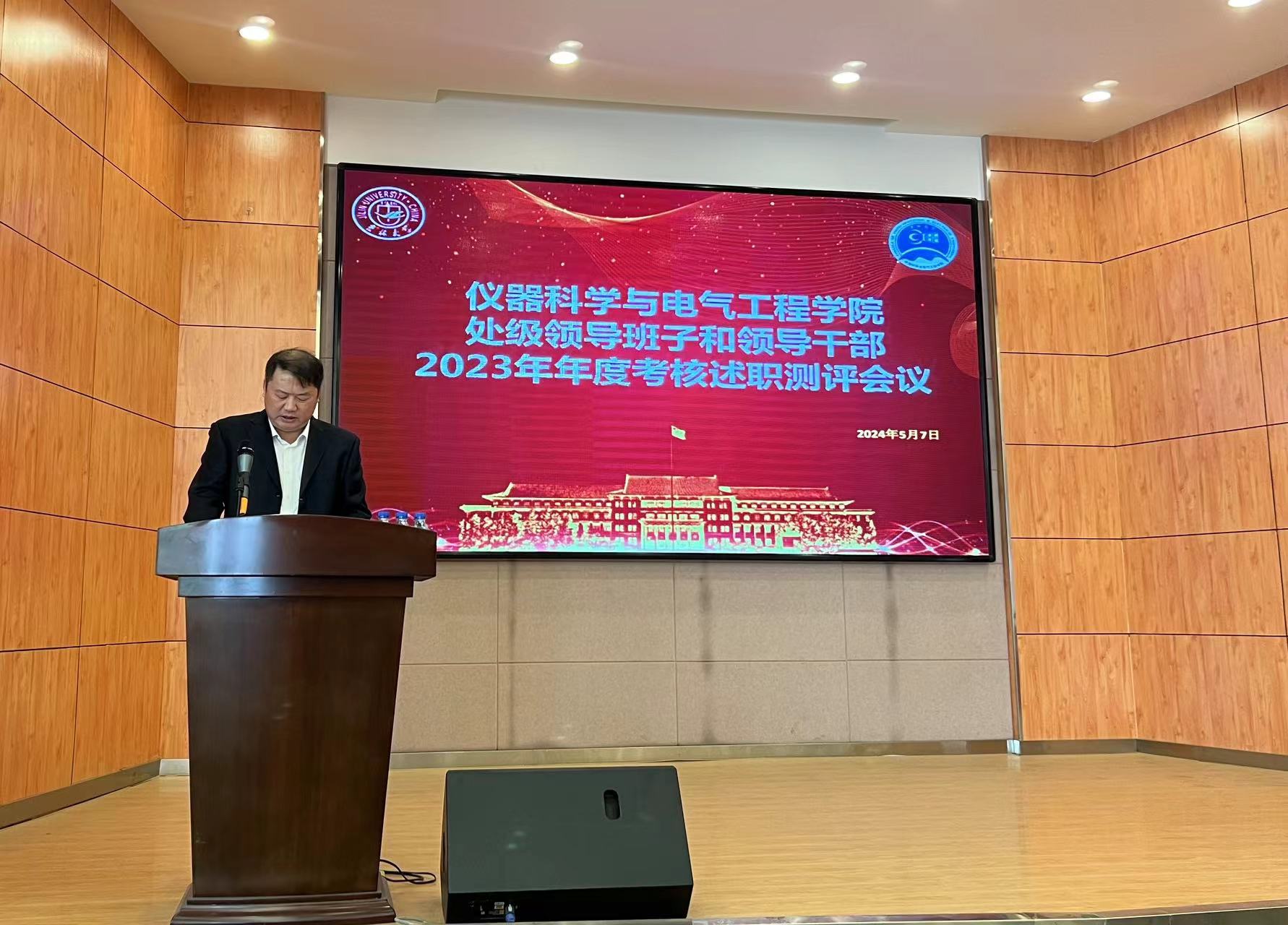 在朝阳校区图书馆报告厅召开处级领导班子和领导干部2023年年度考核述职测评会议,会议由学院党委书记邱增凯主持,学院全体教职员工参加会议。