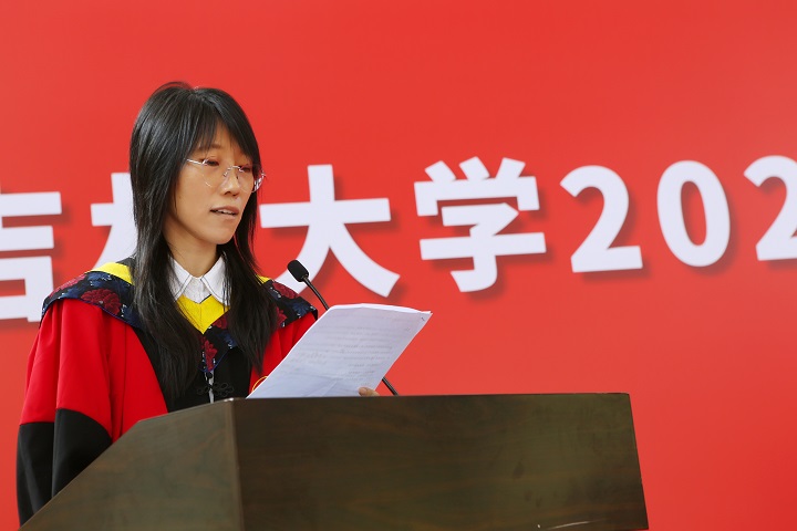 典礼在庄严的国歌声中拉开序幕。随后,副院长、学院学位评定分委员会副主席赵静宣读了博士、硕士学位授予决定;副院长、学院学位评定分委员会副主席李刚宣读了学士学位授予决定。在悠扬的乐曲中,主礼教授为博士、硕士及学士学位获得者依次授予学位,毕业生们身着学位服接受拨穗正冠,标志着学业的圆满收官。