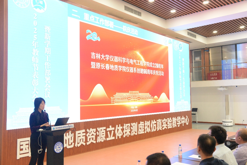 在朝阳校区国家地质资源立体探测虚拟仿真实验教学中心召开2025年教师节表彰大会暨新学期工作部署会议。学院全体教职工参加会议,会议由行政副院长朱宇主持。