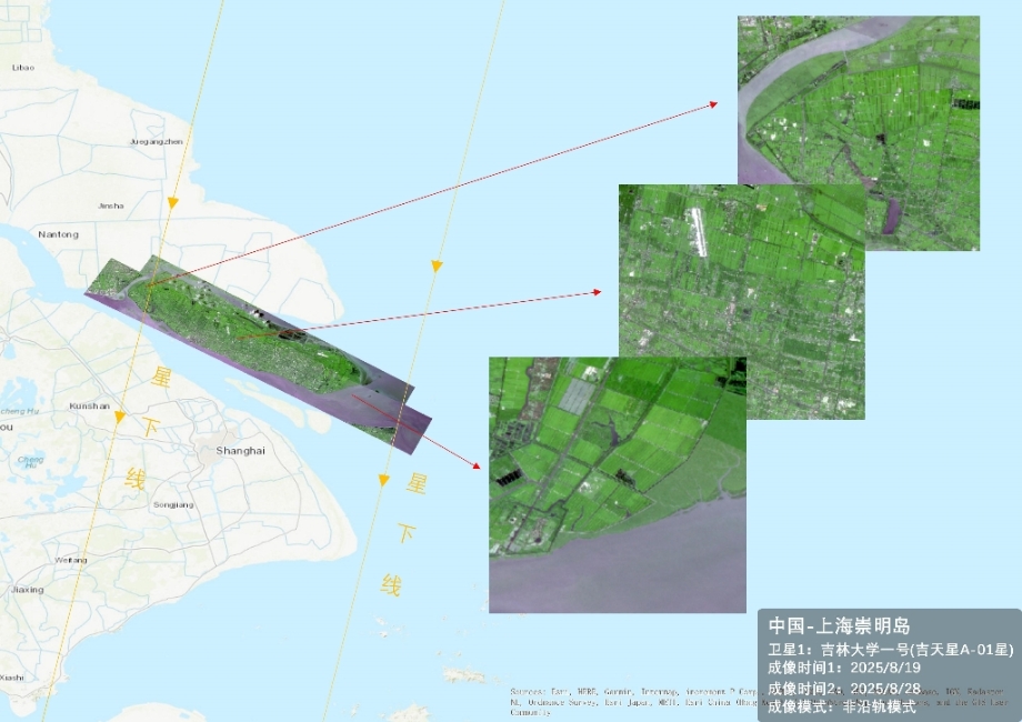 一号卫星利用非沿轨模式两次成像即可实现上海崇明岛覆盖,该成像模式极大提升了用户关注重点目标的观测时效性。