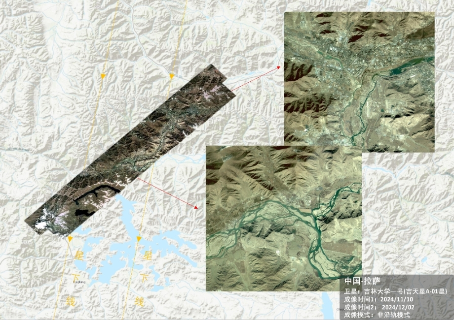一号” 的非沿轨一次过境曲线成像技术,实现了一次过境即可覆盖多目标的“一箭多雕”效果,突破传统卫星严格沿轨道方向成像的限制,能灵活沿弧形、S型等任意曲线目标走向成像,尤其适配重点流域、管线、道路、边境、海岸带等线状目标的高效观测,将遥感卫星综合成像效能提升一个数量级,而“吉天双星”也是目前全球唯一具备该技术且可产业化、业务化运行的卫星系。