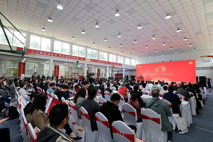 各职能部门主要负责人、各学院党政负责人,校友及师生代表等参加庆祝大会。