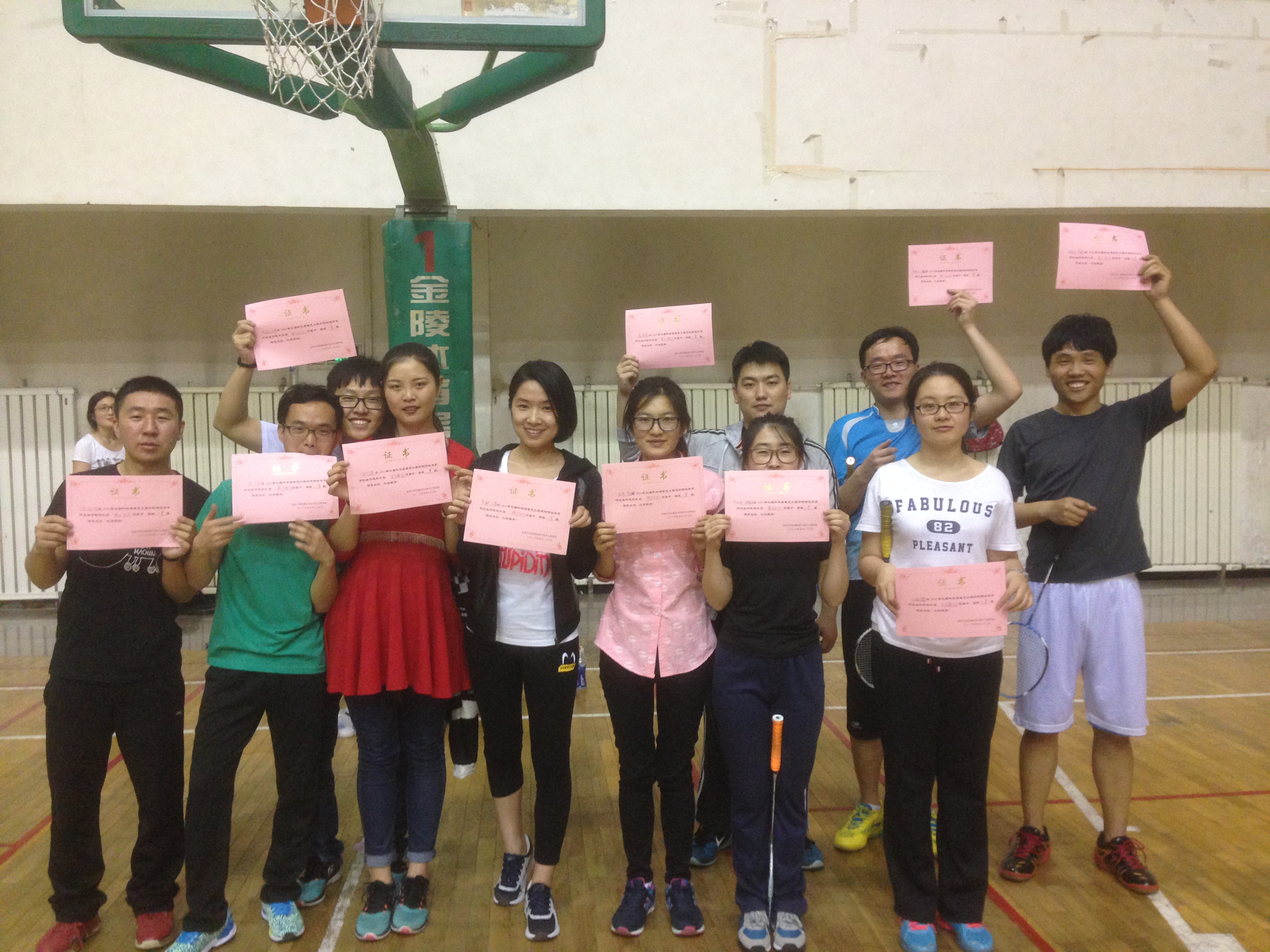 良好的精神风貌。整场比赛中参赛选手们精湛娴熟的技法博得了现场观众们的阵阵喝彩,加油声不绝于耳、笑声不断。选手们使出浑身解数,时而分离扣杀,时而轻盈吊球,每道招式尽是精彩真正赛出了风格赛出了水平。首先进行的是女单比赛,于明媚、田红英等各自高超的技艺让大家折服,顺利地夺得晋级半决赛的席位,最终于明媚同学技高一筹,夺得女单冠军。男单比赛更加精彩,经过激烈竞逐,岳永高、尚小虎等突出重围杀入四强。决赛虽采取三局两胜制,但每一局都十分重要。决赛中比赛氛围相比淘汰赛进入白热化阶段,比分紧咬一路厮杀到8比8平。最终岳永高不负众望获得冠军。男双和混双同样精彩,冠军分别是王伟和尚小虎、王伟和李娜。