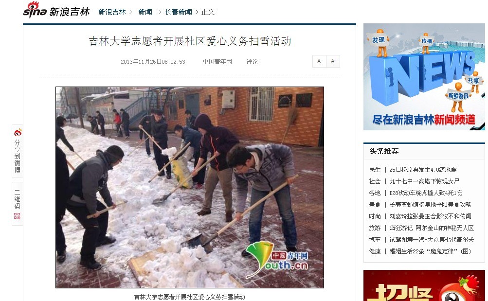 志愿者开展社区爱心义务扫雪活动》为题对此次活动进行了详细报道,这是污污漫画