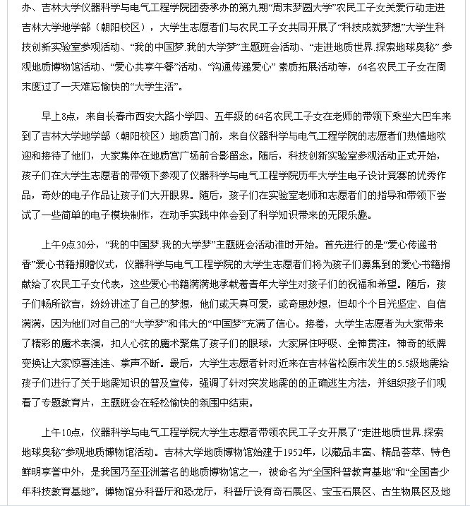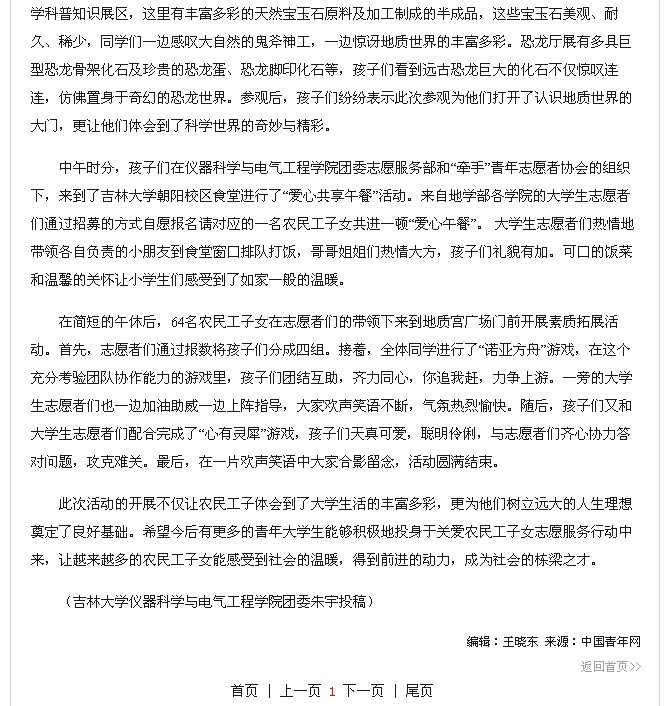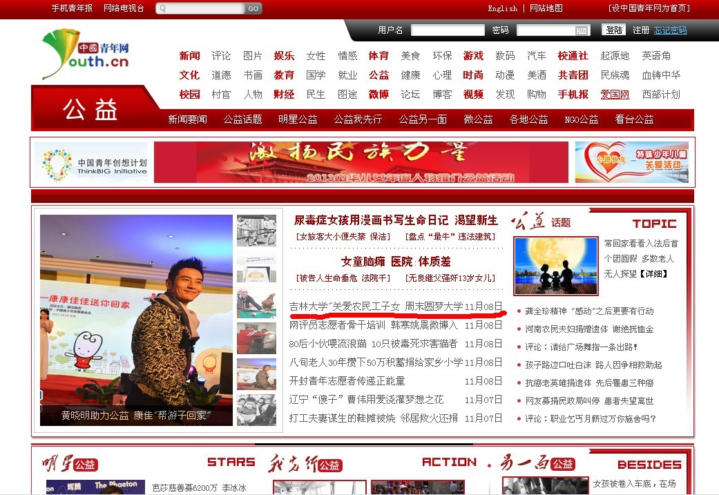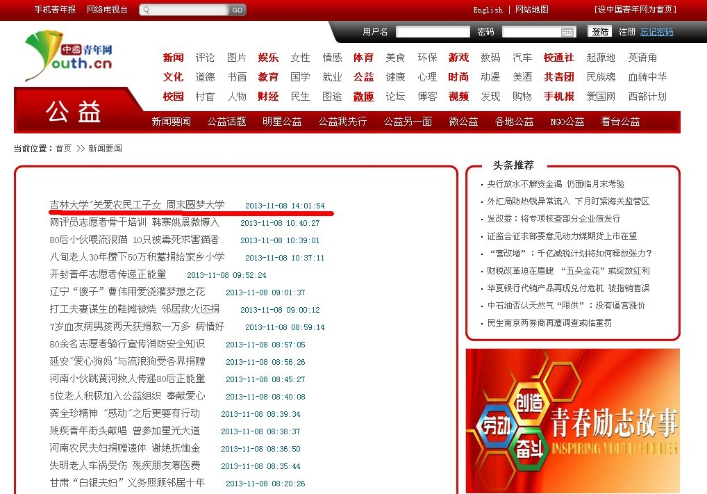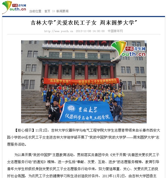 “关爱农民工子女 周末圆梦大学”》为题对此次活动进行了详细报道。中国青年网由共青团中央主办,是国内最大的青年主流网站。此次活动是继2013年8月6日中国青年网以《污污漫画