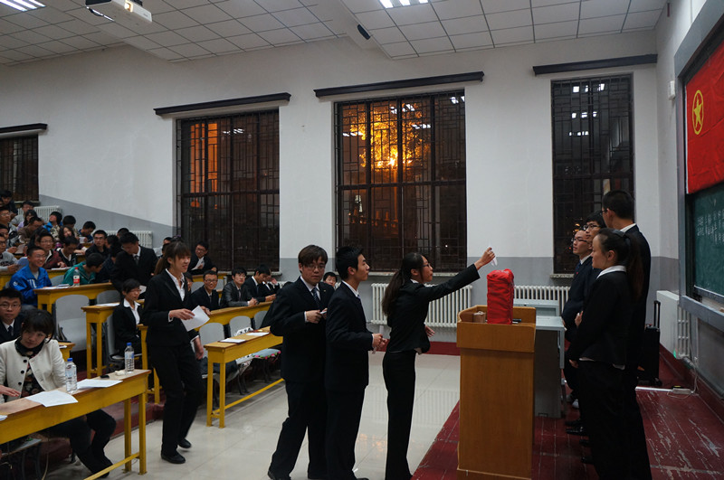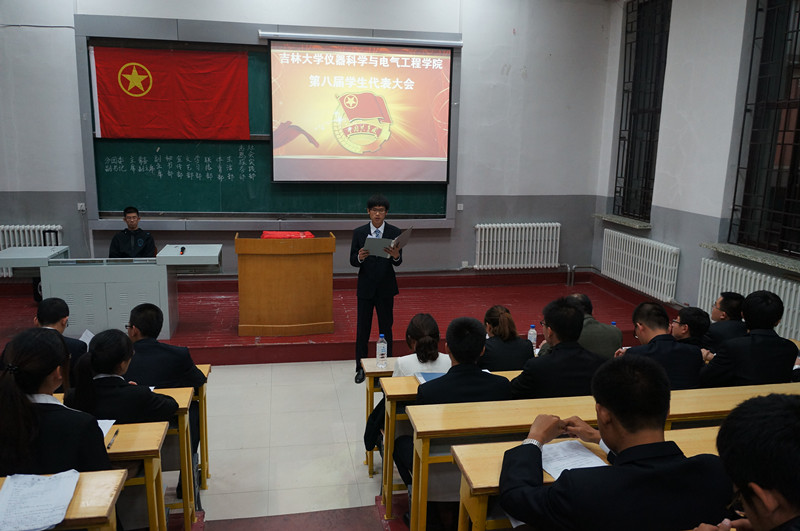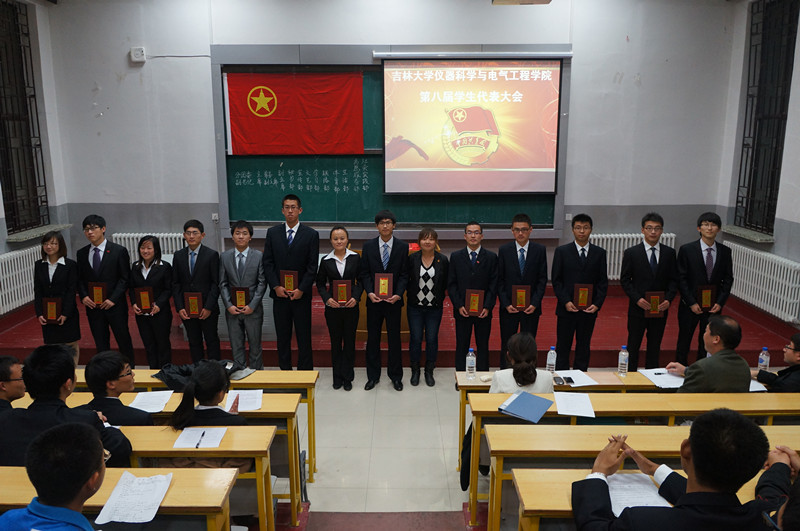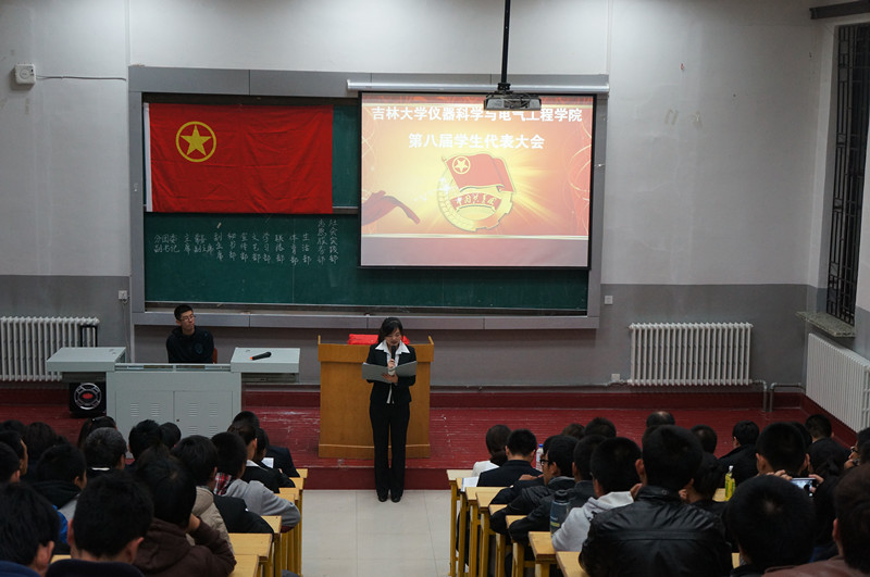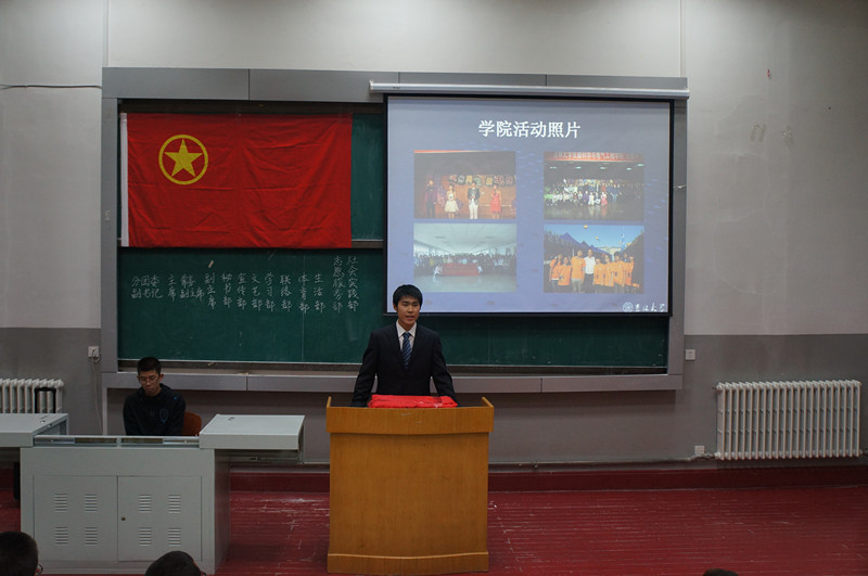 团委学生会章程》。随后,大会审议并通过了第七届学生会主席许鹏同学的学生会工作报告,之后院团委书记刁庶老师为第七届分团委、学生会主要学生干部颁发任职证书。颁发任职证书仪式结束后,学院第七届分团委副书记包志强同学宣读了第八届学生会主要学生干部候选人名单,随后候选人依次上台演讲竞职,他们结合PPT演示详细讲述了自己的竞聘理由和优势、组织和岗位认识以及任职后的工作设想。演讲完毕后学生代表依次上台公开投票,以民主投票方式选举产生了第八届分团委、学生会主要学生干部。之后2011级学生代表韩哲鑫和2012级新生代表李昊阳分别在大会上做了发言,他们分别代表各自所在年级的同学对新一届学生会寄予了希望和祝福。