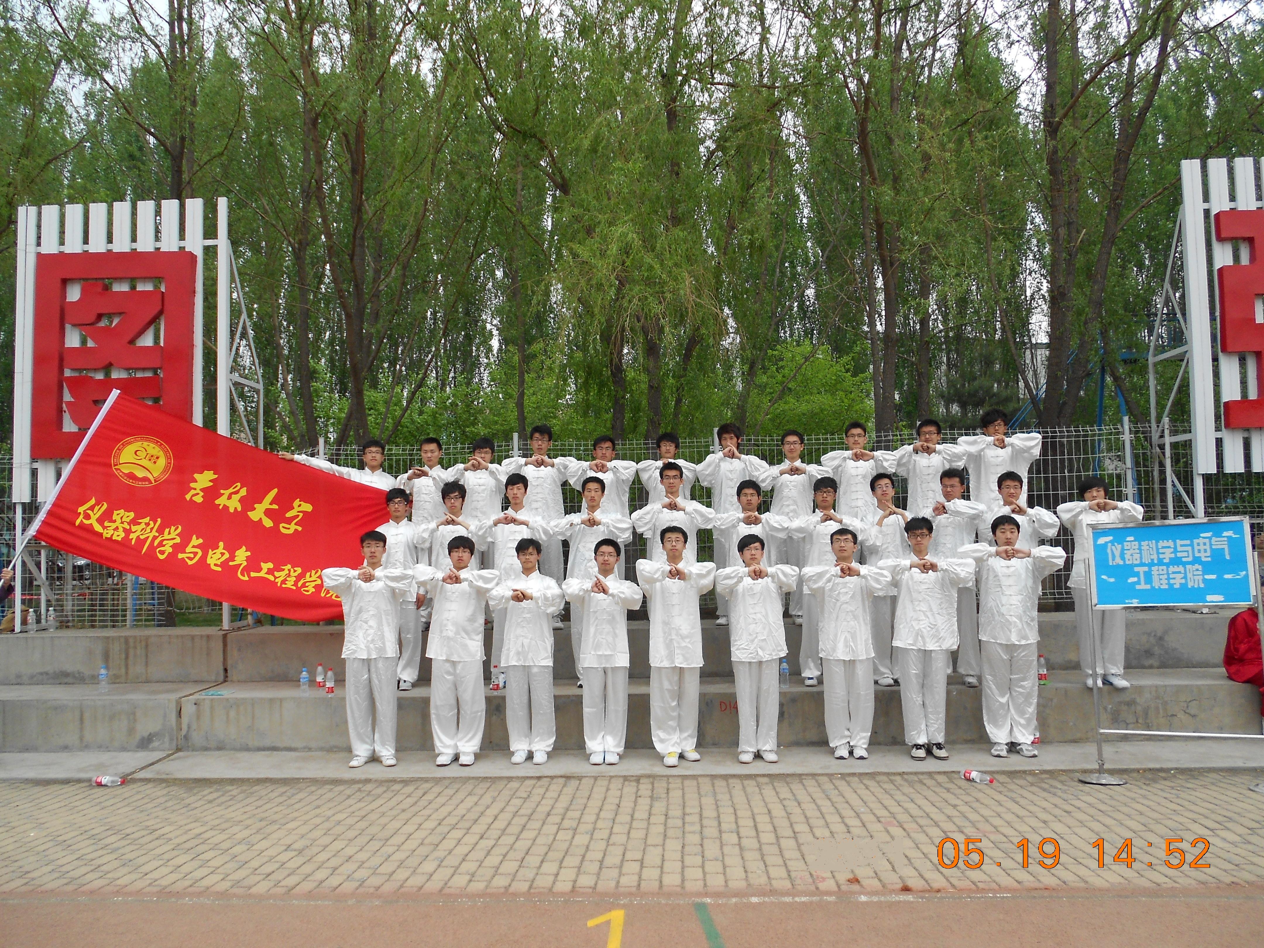 2012年吉林大学第五十一届运动会之学生太极拳比赛于2012年5月19日下午在中心校区体育场隆重举行,仪器科学与电气工程学院选派2011级学生组成代表队参加了此次比赛,学院团委书记兼2009级辅导员刁庶、2011级辅导员朱宇到场为参赛队员加油助威,队员们精彩的表现充分展现了仪电学子的风采。
