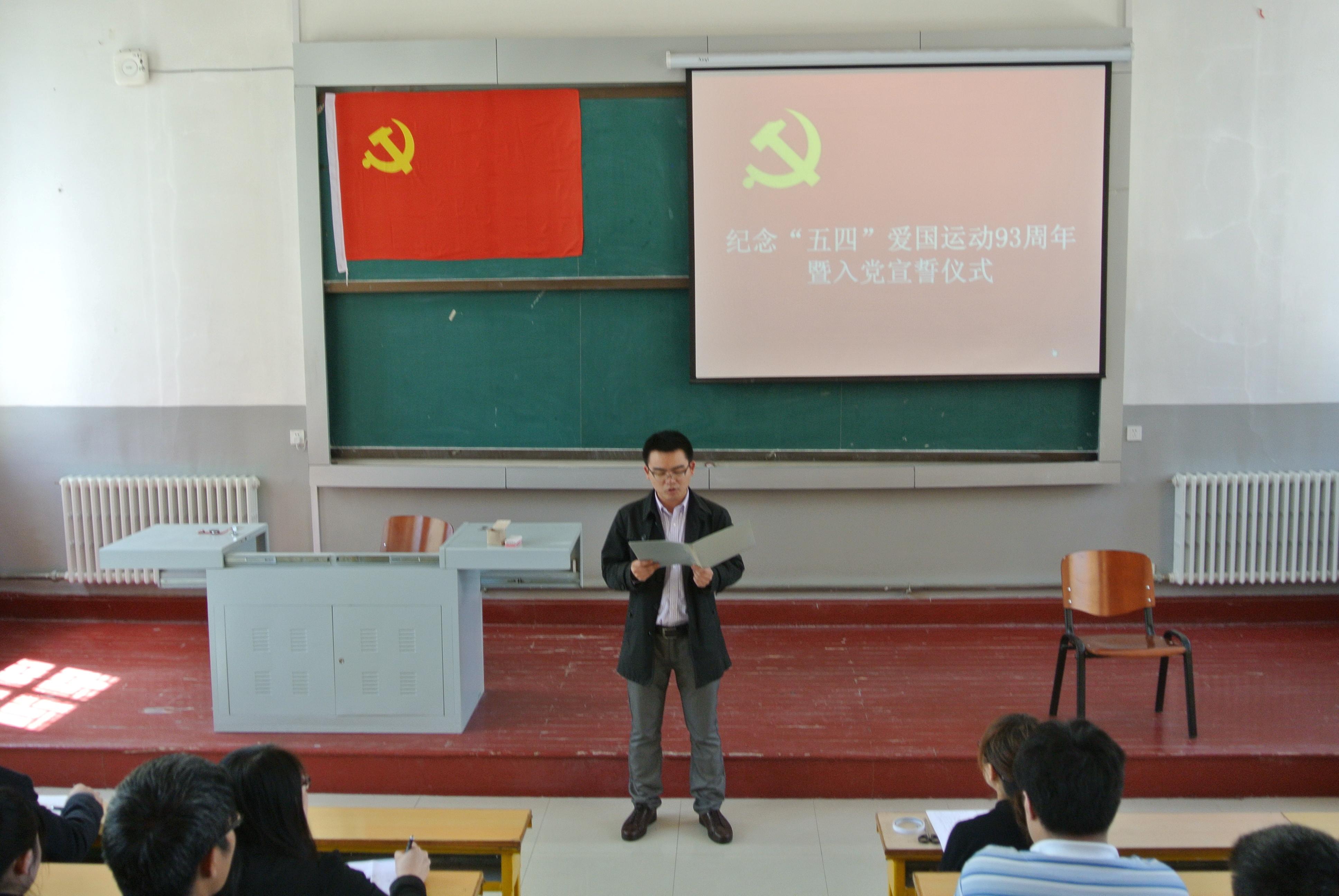 此次入党宣誓活动旨在纪念建团90周年和“五四”运动93周年,希望学院广大青年学生能传承“五四”精神、发扬光荣传统、争做时代先锋!希望大家能肩负起中华民族复兴和发展的使命,珍惜大学学习的宝贵时光,努力实现自己的梦想,为社会主义现代化事业的建设和发展贡献自己的力量!