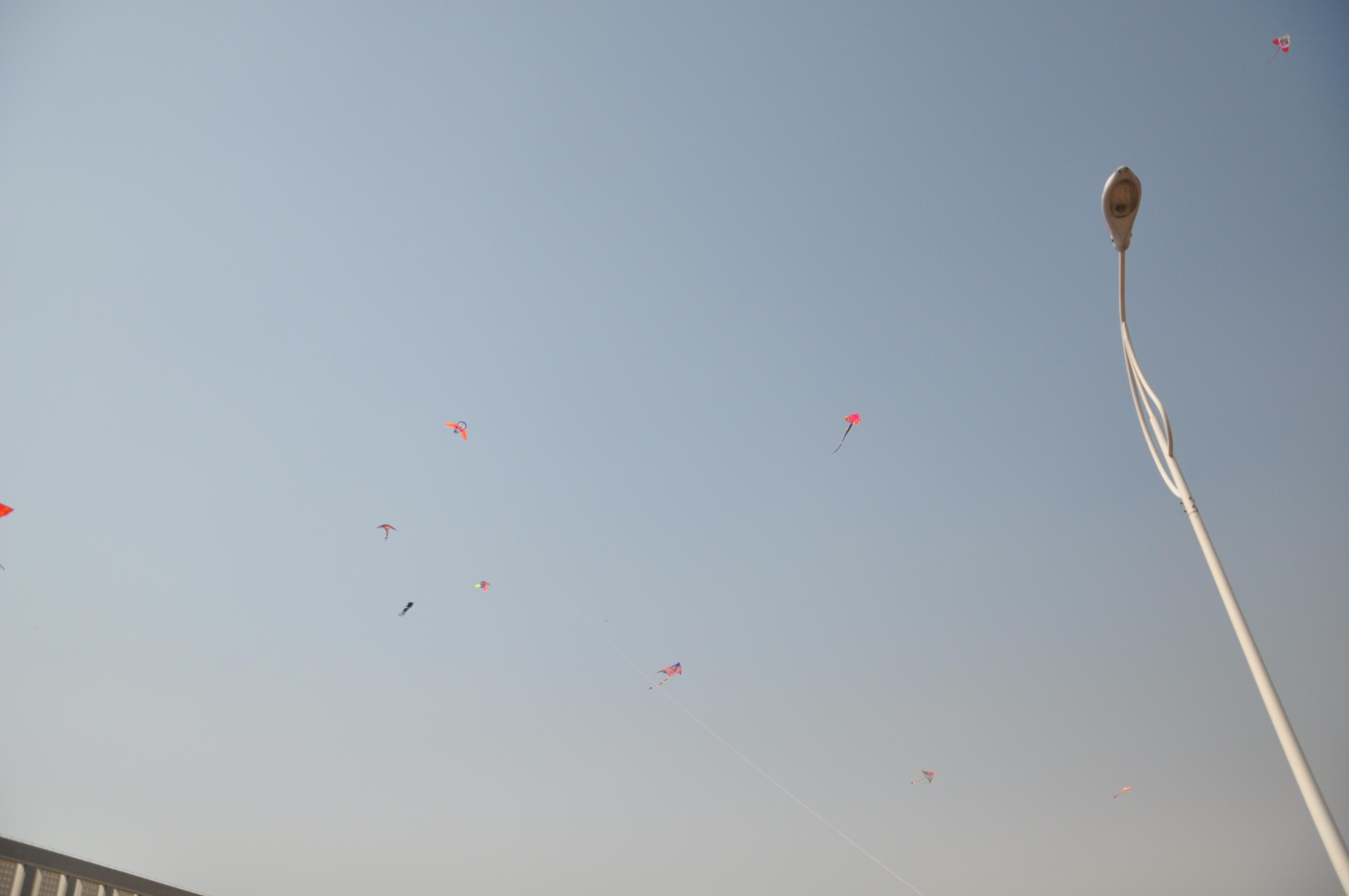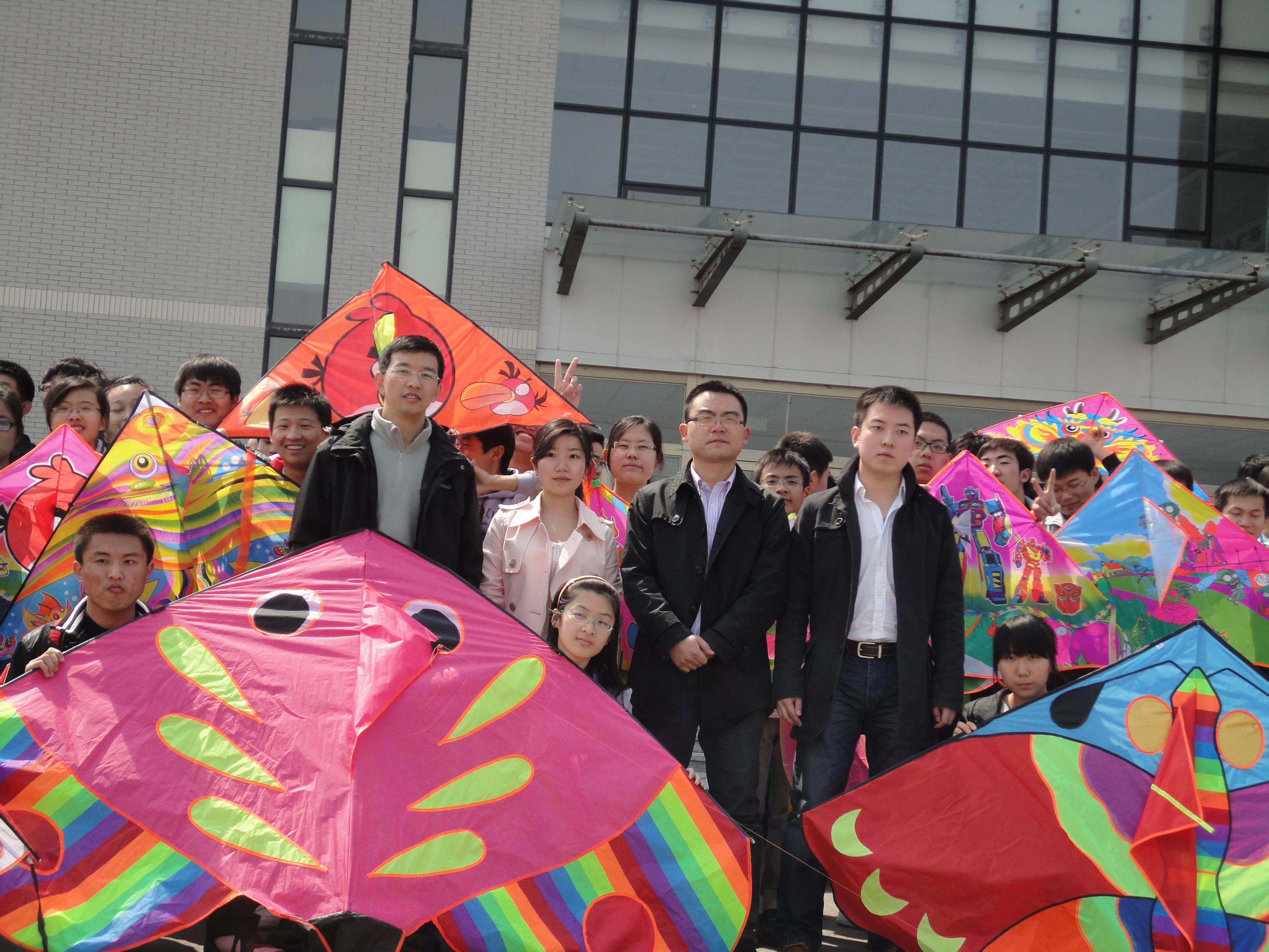 阳春四月,春风徐徐——伴着灿烂的阳光,同学们带着准备好的风筝早早地来到李四光楼前集合,大家的风筝形状各异、五颜六色,有的是购买的,也有的是自己亲身制作的,但是在每个风筝上同学们都写下了自己新一学期的希望和梦想。中午12:00活动正式开始,在短暂的合影留念后,各学院同学有序地来到各自学院的区域内,大家分工明确、团结协作,在很短的时间内一只只风筝都已迎风飞翔,天空中各种美丽的风筝绘成一幅美丽的画卷。活动过程中,各学院的同学欢声笑语、相互交流、其乐融融,现场热烈的氛围吸引了许多路人驻足观看,大家对放风筝这样的传统文化活动给予了高度的评价。活动持续进行了近两小时才圆满结束。据悉,为了节俭环保,同时深入落实“学生公寓文化建设年”方案,此次活动中使用的所有风筝将在之后用于“学生公寓文化长廊”建设。