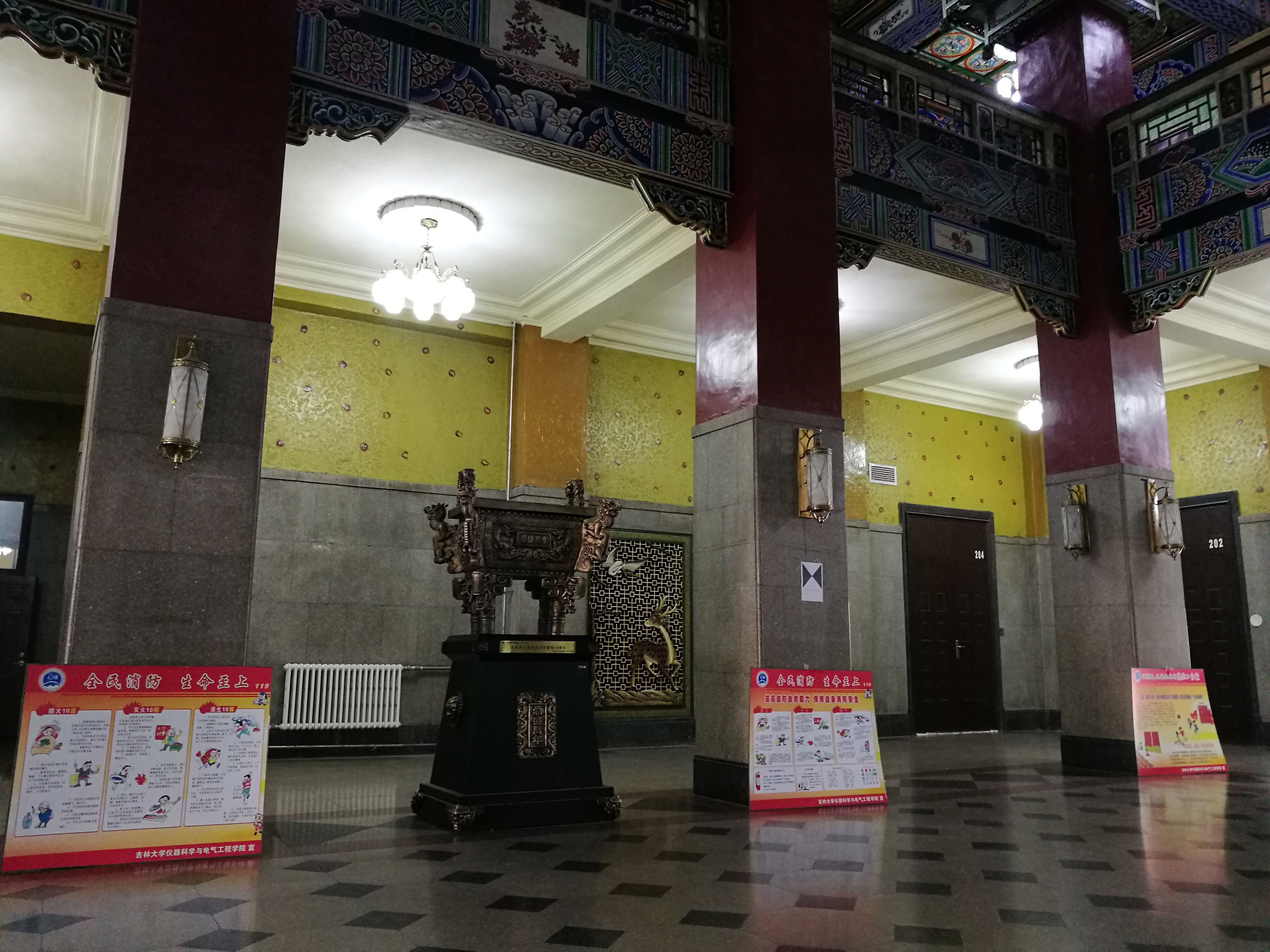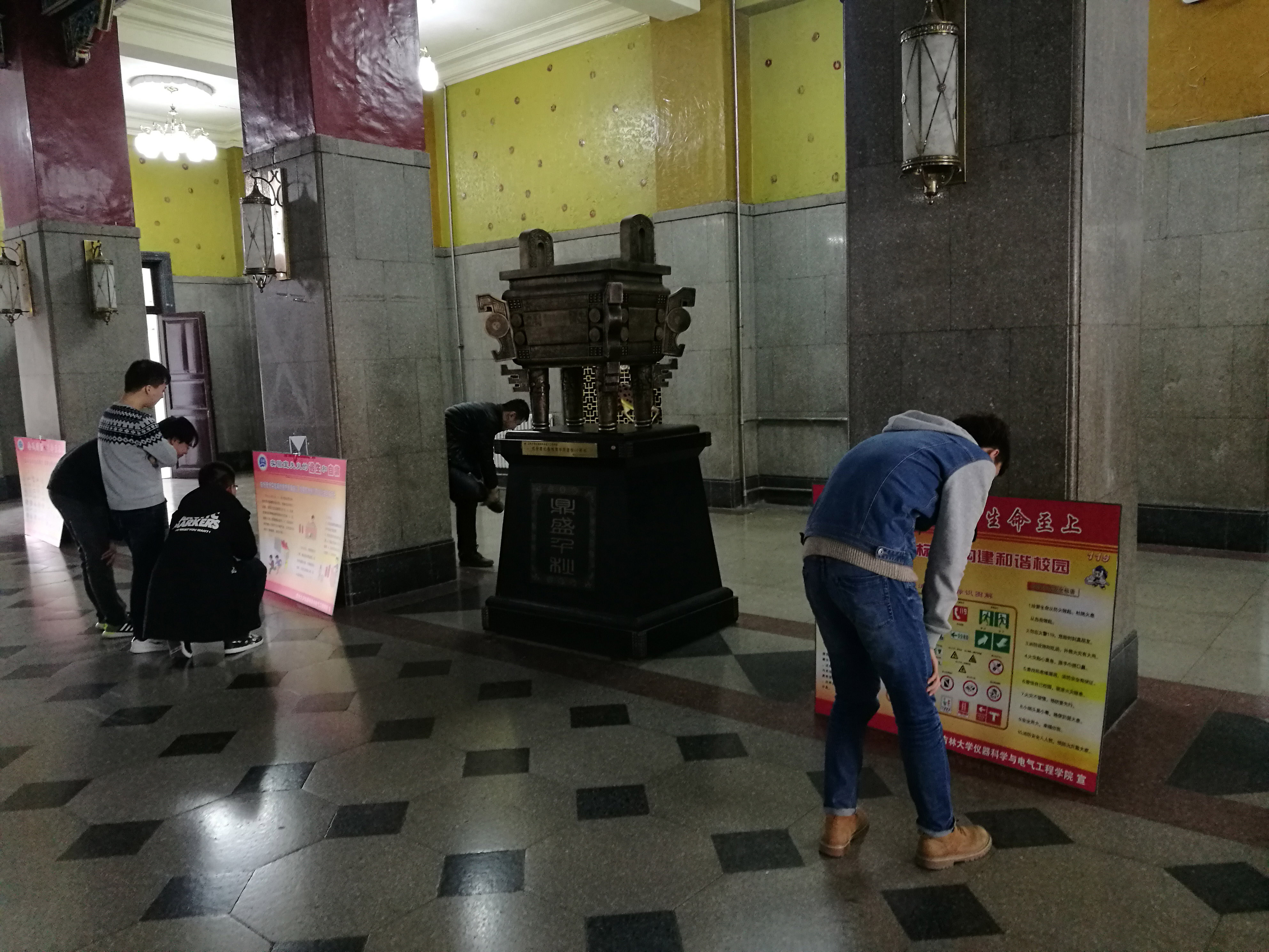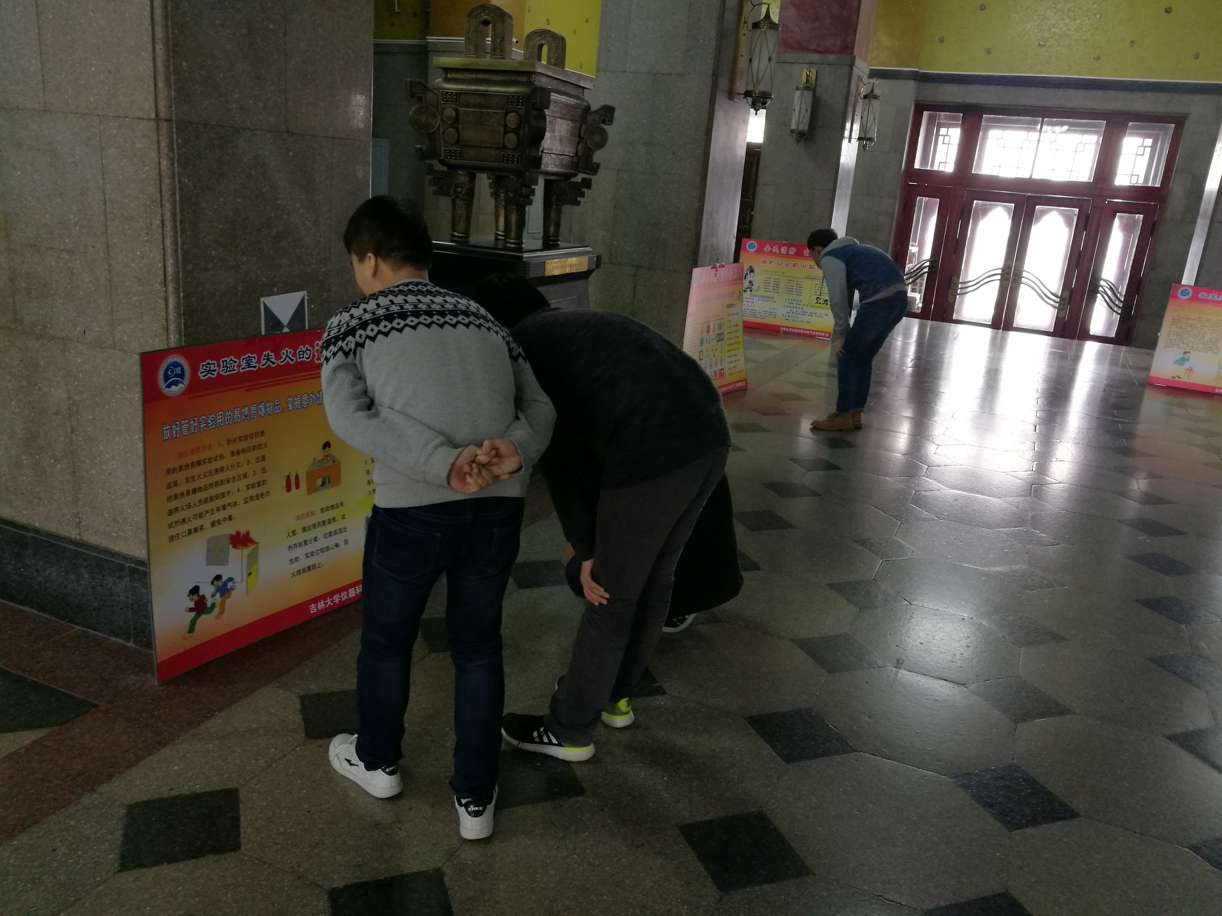 2017年11月9日,数张消防文化宣传展板整齐排列在朝阳校区地质宫二楼,这是污污漫画
