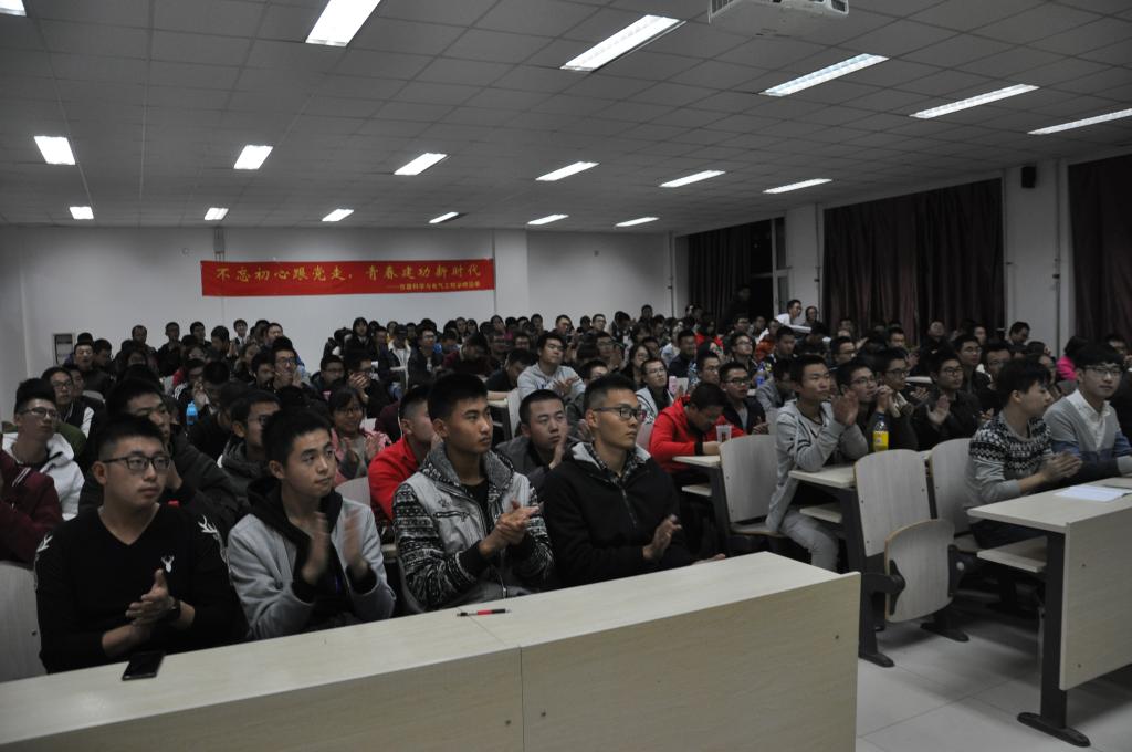 然后,主持人为同学们依次播放了新华网为迎接十九大制作的纪录片《领航》以及习近平同志在十九大报告中讲话的节选片段,同学们认真观看,不时颔首,倍感振奋。视频播放结束后,现场掌声雷动,不绝于耳,他们是在为日益强盛的祖国感到自豪,为能够处在这样一个伟大的新时代感到骄傲。
