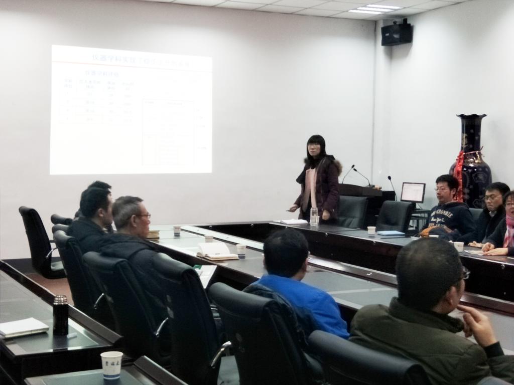 仪器科学与技术系主任林婷婷教授做了“面向双一流的仪器系发展与建设”主题报告。她的报告立足仪器科学与技术学科长远发展,总结了学科的优势和近些年取得的成绩;针对学科今后的发展,需要继续突出特色,提出了在高端人才、ESI高被引论文以及重大科研奖励等方面作为突破口的发展建设思路;并以习近平总书记新年贺词“幸福都是奋斗出来的”勉励全系教师不忘初心、不懈努力,为学校双一流建设做贡献。