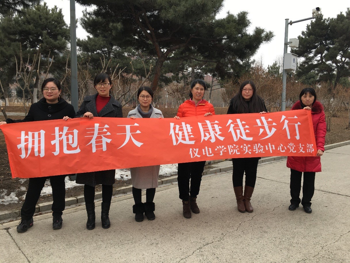 实验中心的党员同志们即投入到紧张的工作中。2014级本科生毕业设计如火如荼地进行,春季学期开出的实验课也在紧锣密鼓地进行中,各种实践课程都按照教学计划按部就班地开展,本科生实验室每天都在正常运转。在保证正常教学任务的前提下,实验中心党支部合理安排时间,本着“业务工作正常运行,党建工作稳步推进”的原则,开展了本学期开学以来的第一次“党员活动日”活动——“拥抱春天,健康徒步行”活动。