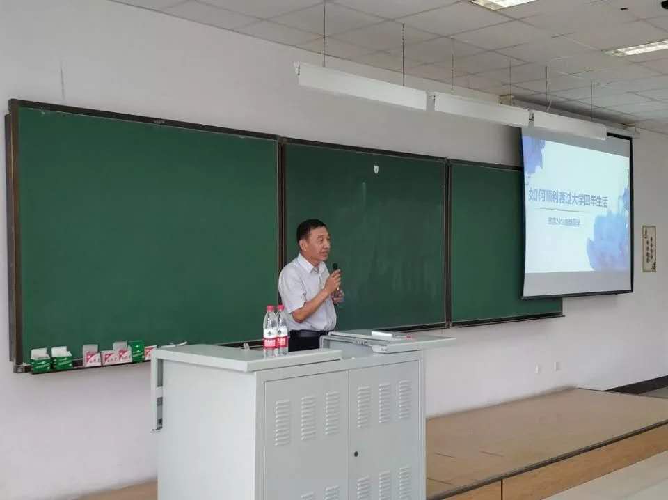 党委书记王爱民于南区李四光楼302教室以“如何顺利度过大学四年生活”为主题为2018级新生进行了一场生动的讲座。