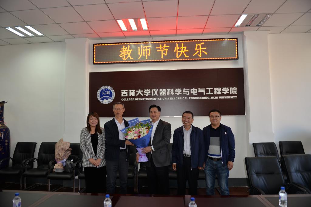 党委书记王爱民代表全体师生向校长李元元献花并祝教师节快乐,相信在校领导的关怀下,以林君教授为榜样,学院全体教师定会共同努力,为学校“双一流”建设贡献力量。