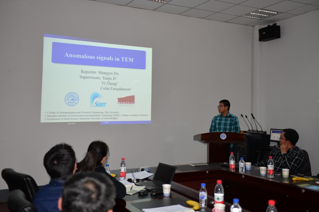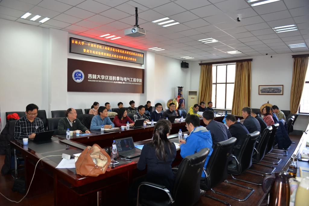学科建设、科学研究方向、协同创新等方面进行了介绍,并详细介绍了联合实验室在超导瞬变电磁法对感应极化双场测量方向的研究进展。最后,双方共16名专家及学生围绕超导瞬变电磁法、航空超导磁梯度测量技术、超导核磁共振找水技术等方向的研究进展在研讨会上做了学术报告。会后双方就进一步的合作进行了深入的探讨,并达成共识。