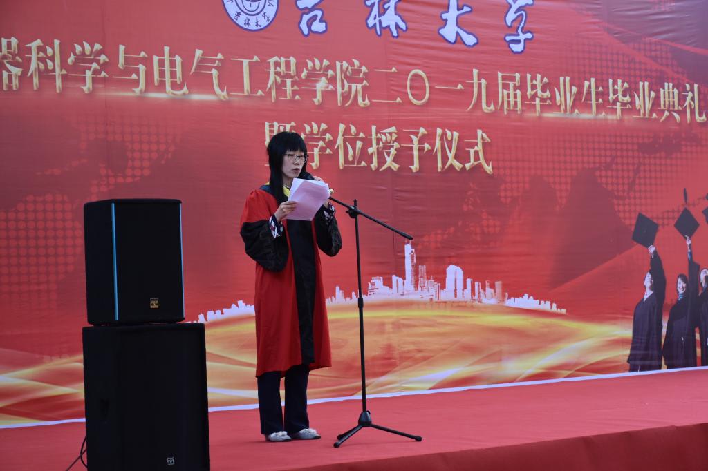 2019届毕业典礼暨学位授予仪式在朝阳校区体育馆隆重举行。院长嵇艳鞠、党委书记王爱民、副院长林婷婷、副院长刘长胜、地球信息探测仪器教育部重点实验室副主任孙忠、院教学委员会主任程德福教授、院学科学位评定分委会副主席于生宝教授,教师代表、学生家长代表以及全体2019届毕业生参加了此次典礼。毕业典礼由院党委副书记兼副院长周伟主持。