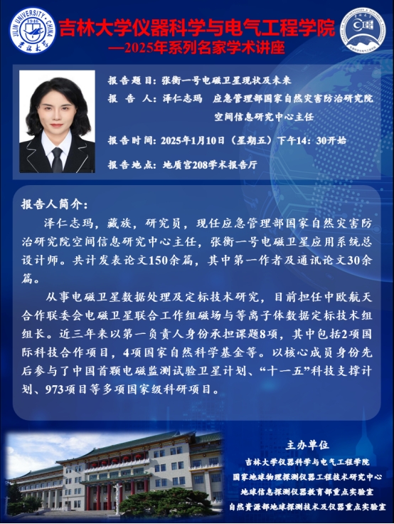 污污漫画 2025年系列名家学术讲座——泽仁志玛 应急管理部国家自然灾害防治研究院空间信息研究中心主任