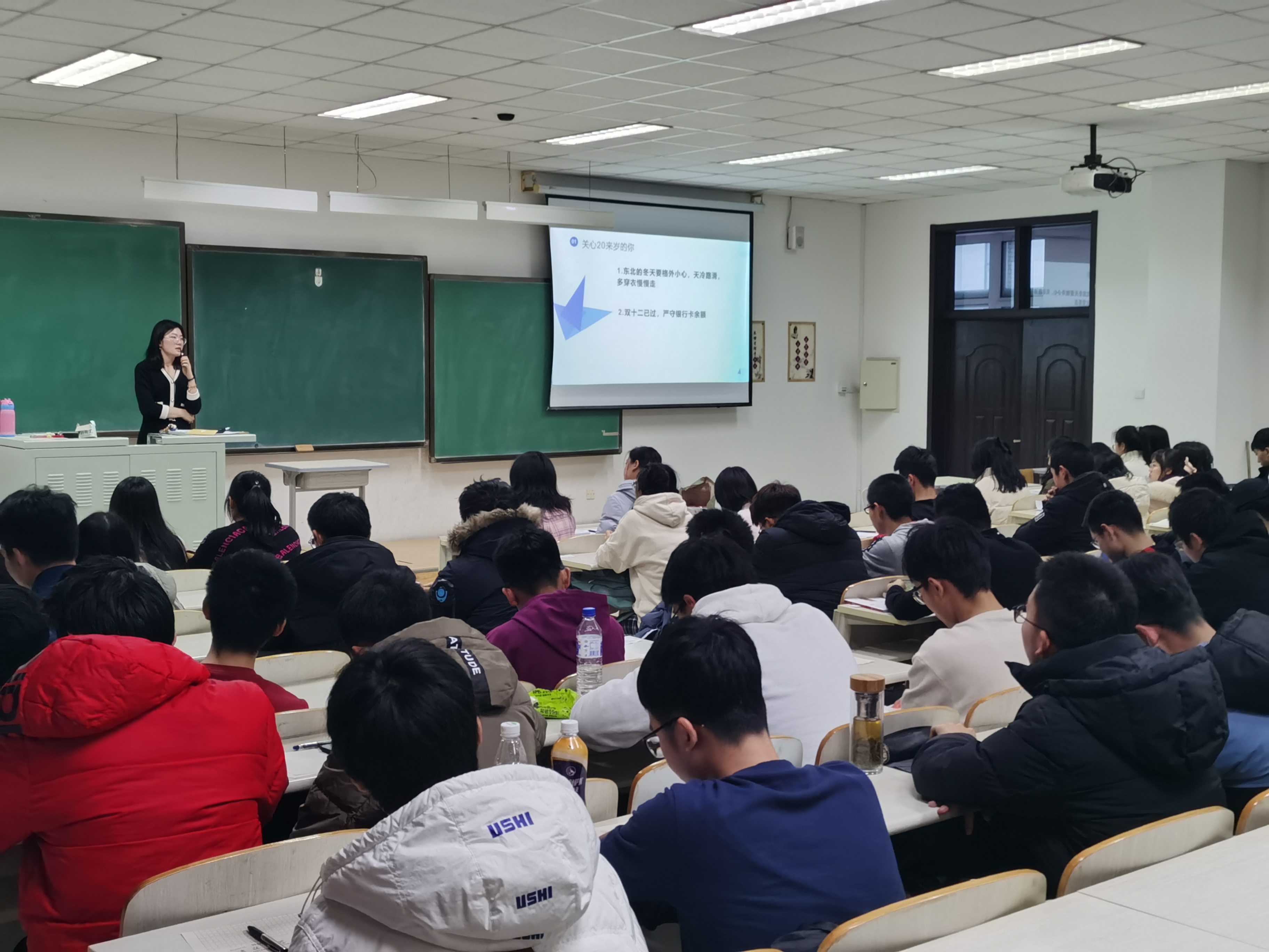 老师通过平易近人的授课方式、简洁凝练的语言以及适当的互动,使得本次思政课效果生动而富有内涵,引发了学生的强烈共鸣。相信在接下来的大学生活中,2020级新生能保持一颗积极向上的心,脚踏实地,砥砺前行!