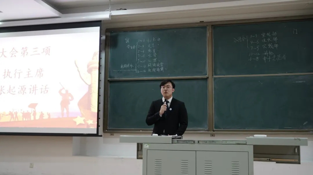 在经信教学楼第八阶梯教室召开了第十六届团学联组织纳新选拔大会。学院团委负责人马姗姗出席了本次大会,会议由学生会执行主席张雪洋同学主持。