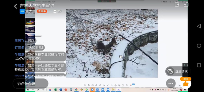 在宣讲同学的介绍后,几位高中学子提出了有关专业院系等方面的问题,为了能够给同学们带来更进一步的帮助,实现宣讲效益的最大化,19和20级的几位同学以线上会议的形式,与提出问题的同学进行一对一的解答,结合提前制作好的院系介绍的PPT、微视频等,以更加生动形象的方式解答了高中学子们的疑问,使聆听此次宣讲的同学们感受良多。
