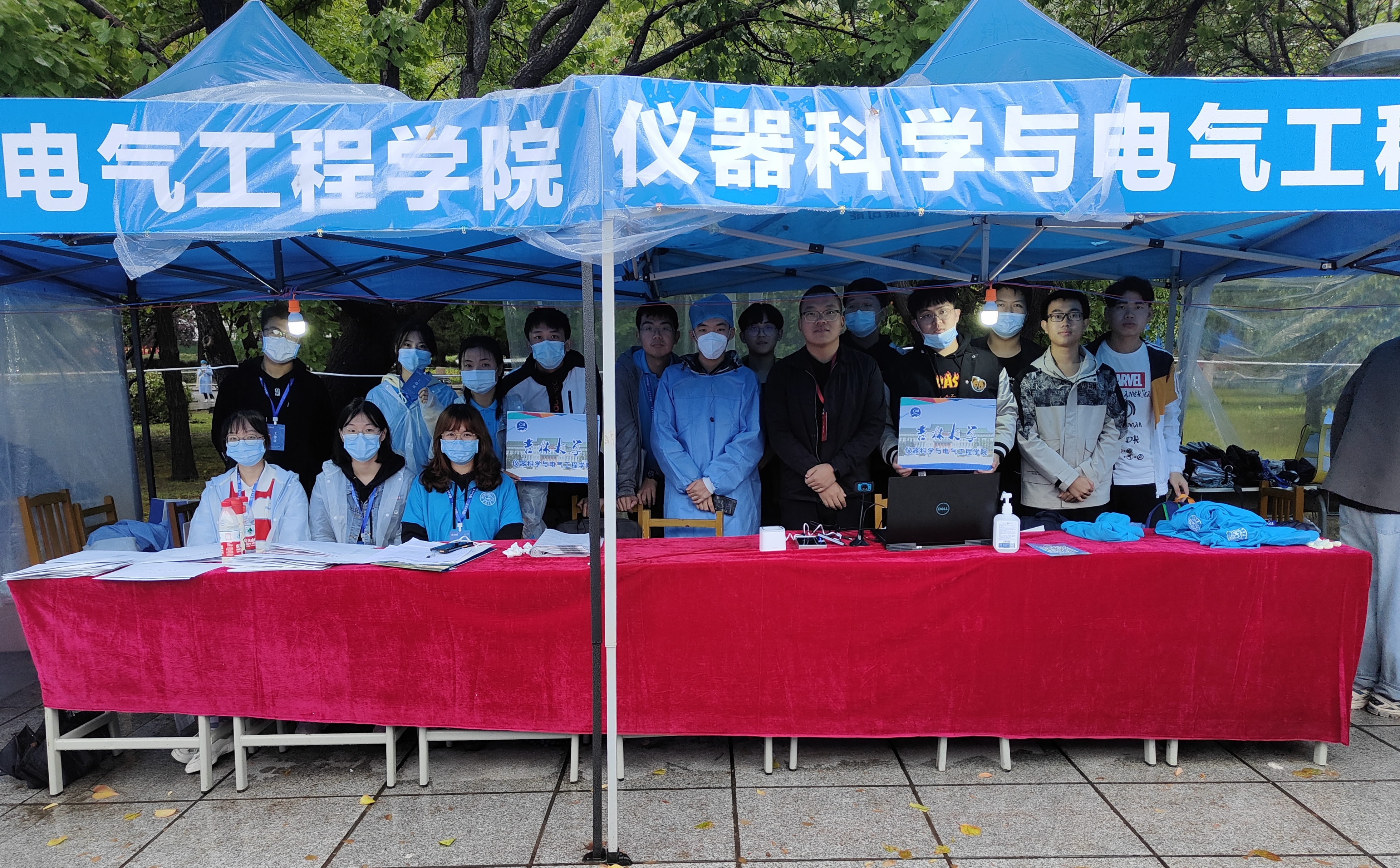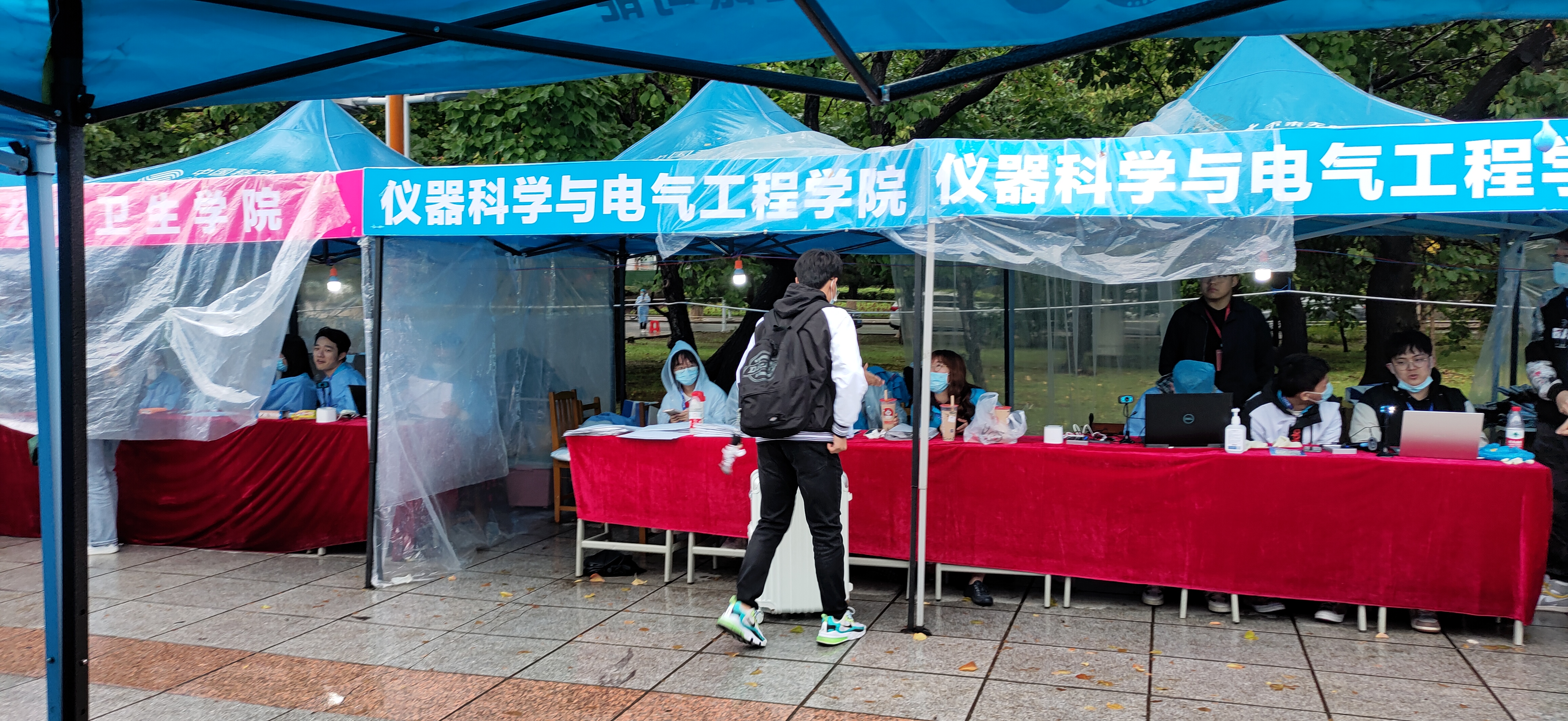 迎新志愿者按时到岗开展迎新场地布置工作。污污漫画
