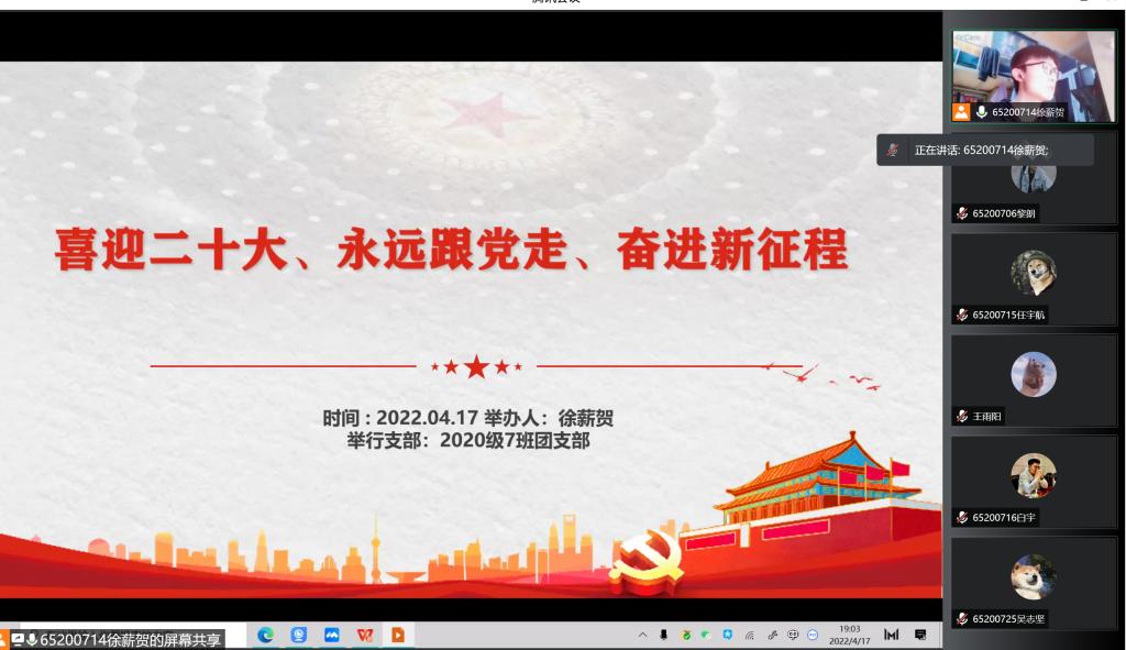 652007团支部开展“喜迎二十大,永远跟党走,奋进新征程”主题团日活动,活动由团支部书记徐薪贺主持。