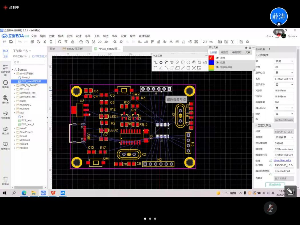 “凌空蹈虚,难成千秋伟业;求真务实,方能善作善成”,工科学习,不但需要扎实的理论基础,各类软件的熟练使用也是优秀工程技术人才的必修课之一。为丰富同学们的课余生活,传授与专业课相关的软件的使用方法,大学生科技创新协会(以下简称科协),于2022年4月9日和2022年4月16日晚六点,通过腾讯会议直播的方式举办了两场主题分别为“基于Arduino的趣味编程仿真”和“立创EDA平台下的PCB设计讲解”的活动,由科技部部长薛涛担任主讲。