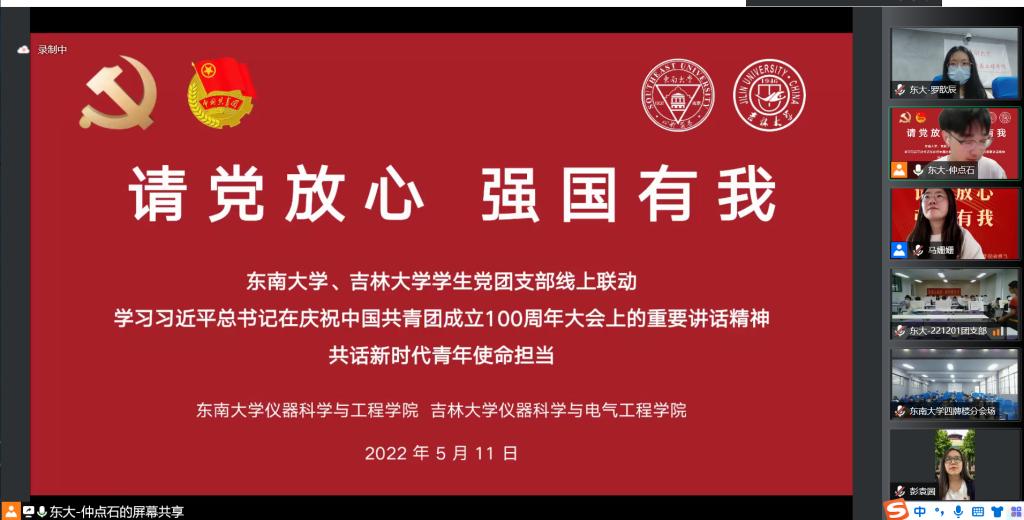 同学的分享,东南大学党团支部学生代表分享他们的抗疫事迹。精彩的发言与分享让与会的同学们再一次感受到了战“疫”之下青年人的奋斗与担当。围绕会议主题,参会同学展开了热烈的讨论,学生代表纷纷表示中国共青团成立100周年是历史性的一刻,青年一辈是时代的见证者,也是时代的参与者,要牢记使命,努力奋斗,回报祖国。