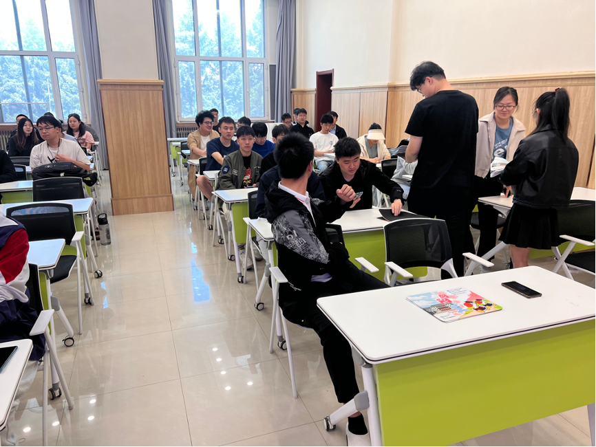 元素和心理健康提示语:两只穿着硕士服和博士服的吉大“校宠”白天鹅分别代表硕士、博士研究生,他们在朝阳校区地质宫门前漫步;被杏花点缀的“向阳而生”标语提醒着研究生在科研生活中,要正确面对压力,时刻关注心理健康,以积极健康的心态迎接挑战。在活动现场,主持人向大家介绍鼠标垫的寓意,向研究生普及心理健康知识并提醒大家关注自身心理健康。随后,各位兼职心理辅导员老师将鼠标垫分发到各位研究生手中,大家接过这些精心设计的鼠标垫,脸上露出了欣喜的笑容。大家围坐在一起,交流着鼠标垫上的提示,分享着彼此的心得体会。这些简短而富有深意的话语,成为了他们相互支持、相互鼓励的桥梁,指引着他们前行的方向。