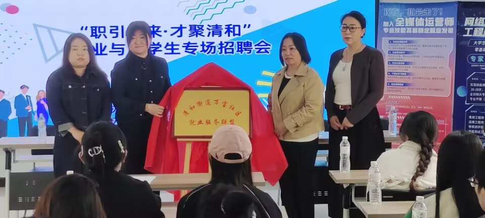 招聘会开幕式上,清和街道领导致辞表示,此次活动是街道深化“15分钟就业服务圈”建设的重要举措,旨在通过“街道-高校-企业”常态化合作机制,推动人才与岗位精准匹配。现场还举行了“社区就业服务联盟”揭牌,标志着三方将在未来持续深化产教融合,为辖区就业工作注入新动能。