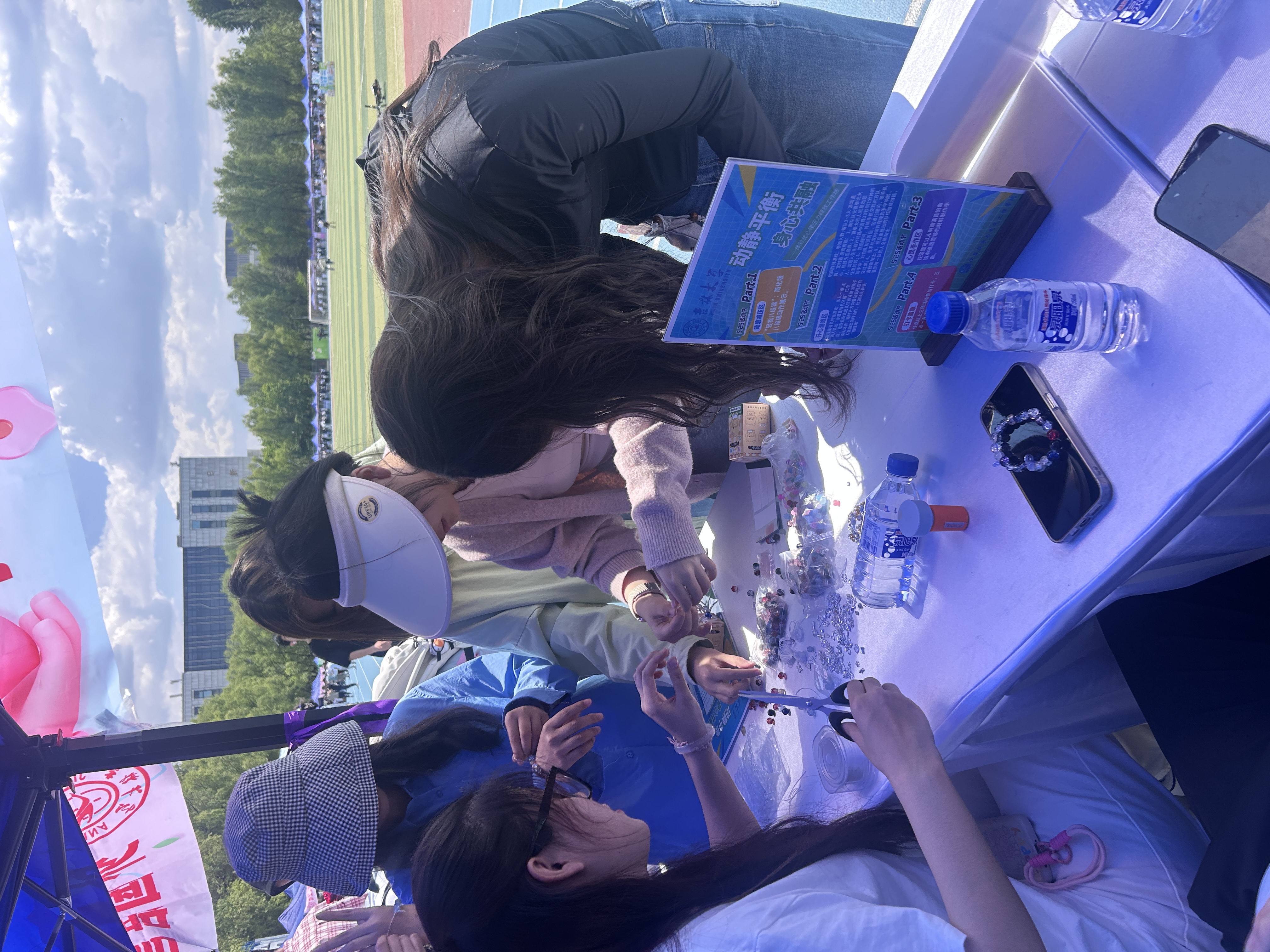 本次工作坊由学院心理兼职辅导员周琪老师、包健伦老师指导,朋辈心理辅导员马婧涵同学、田雨同学策划,巧妙设置了三个各具特色的体验区域,为同学们提供了多元化的心理压力释放途径。“动感减压区”以传统养生文化为依托,推出“轻松八段锦”活动;“开心游戏区”通过两个趣味盎然的互动游戏营造轻松愉悦的氛围;“心灵手作区”为同学们提供了一个静心创作的空间。