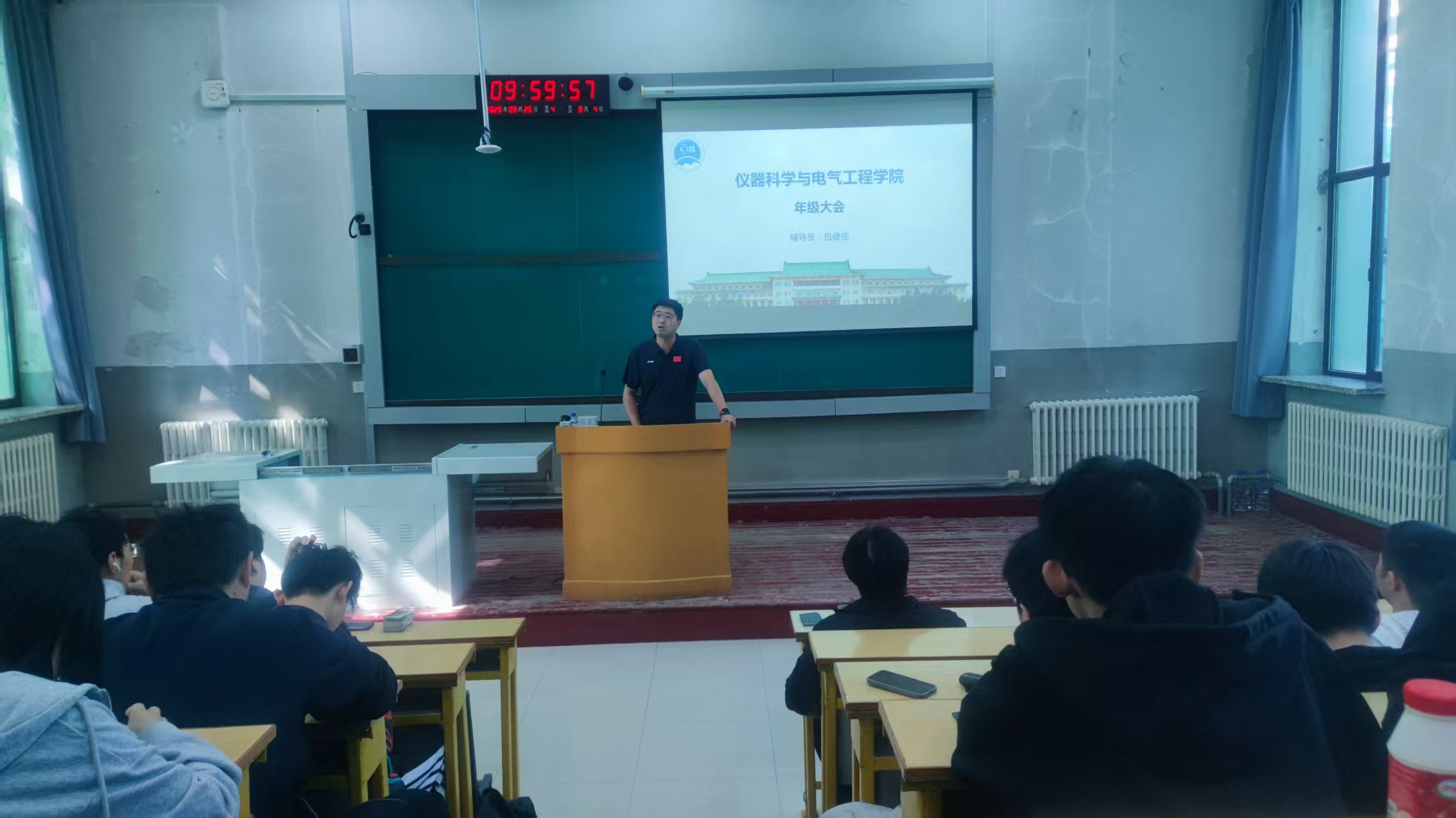 成立二十周年院庆活动,包老师进行了全面动员,鼓励同学们踊跃参与院庆志愿活动,共同为院庆的顺利开展贡献力量。