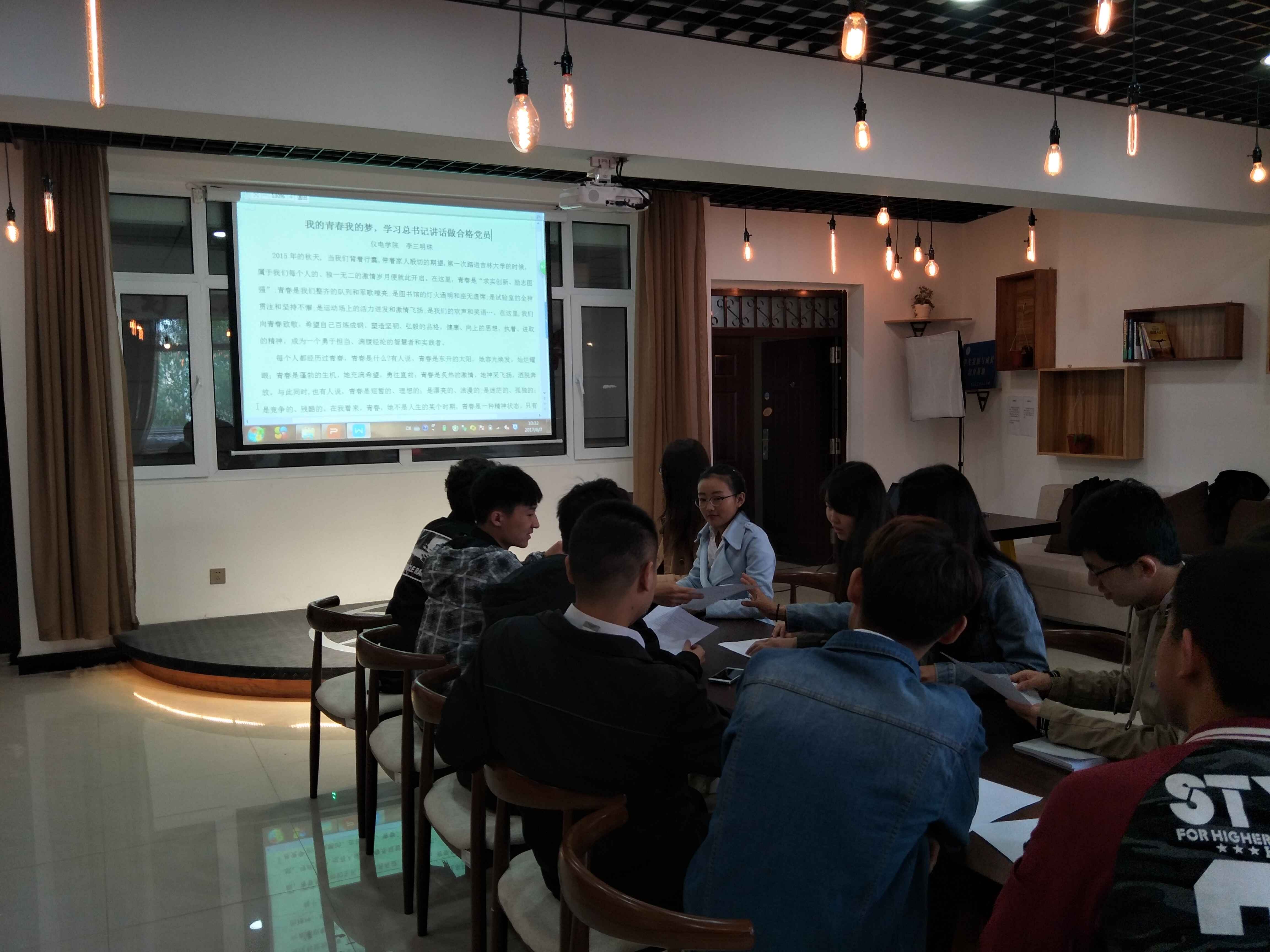 团委学生会主要干部也积极组织参与评阅,在学生会主席陈健组织下,团学组织主要学生干部于会议室开展审阅工作,一一将同学们的投稿作品在投影仪展示并打分。本着客观工作的原则,根据最后的总分成绩最终决出李三明珠的“我的青春我的梦,学习习近平总书记讲话做合格党员”、张昕昊的“梦青春,梦飞扬”、师晨洋的“我们正青年”等多篇优秀文章。