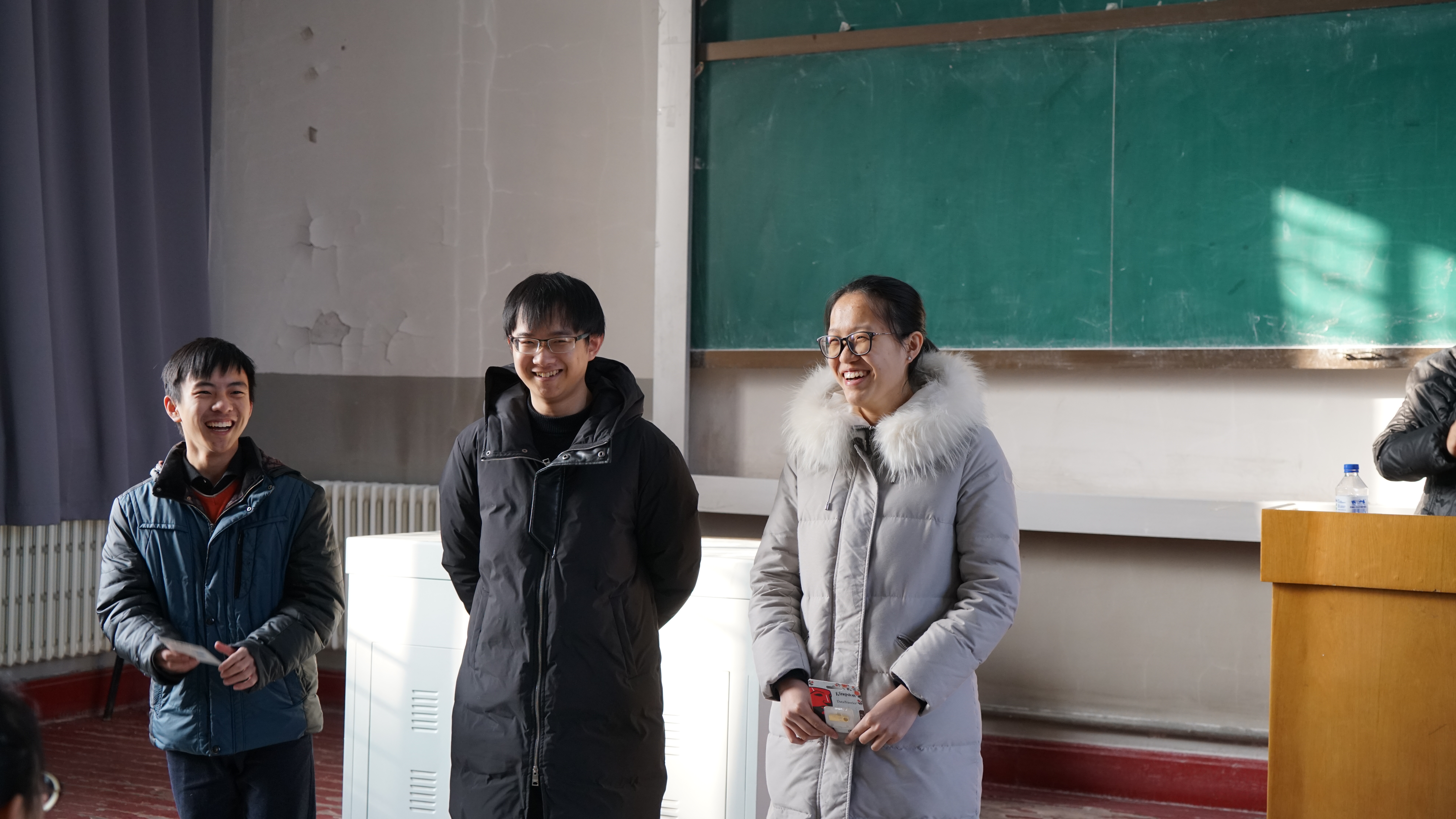 2017年1月20日上午九点,2017年度寒假培训总结大会正式开始。首先,千承辉老师向大家表达小年祝福,充分肯定了大家在过去七天培训中出色的表现,同时要求大家再接再厉争取更上一层楼,在17年的全国大学生电子设计大赛中取得好的成绩。接着,千老师对在七天培训中表现优秀的组合进行了表彰,颁发216+开放实验室优盘。其中获得优盘的组有14级李冰洋组、15级张博森组、16级黄晓菲组。在各组拿到各自的优盘后,各组组员发表了获奖感言以及七天培训的培训感受,都表示在新的一年更加努力,定不负老师期望。最后,师生一起观看了16级成员组织的机器人表演,总结大会在大家的欢笑声中结束。