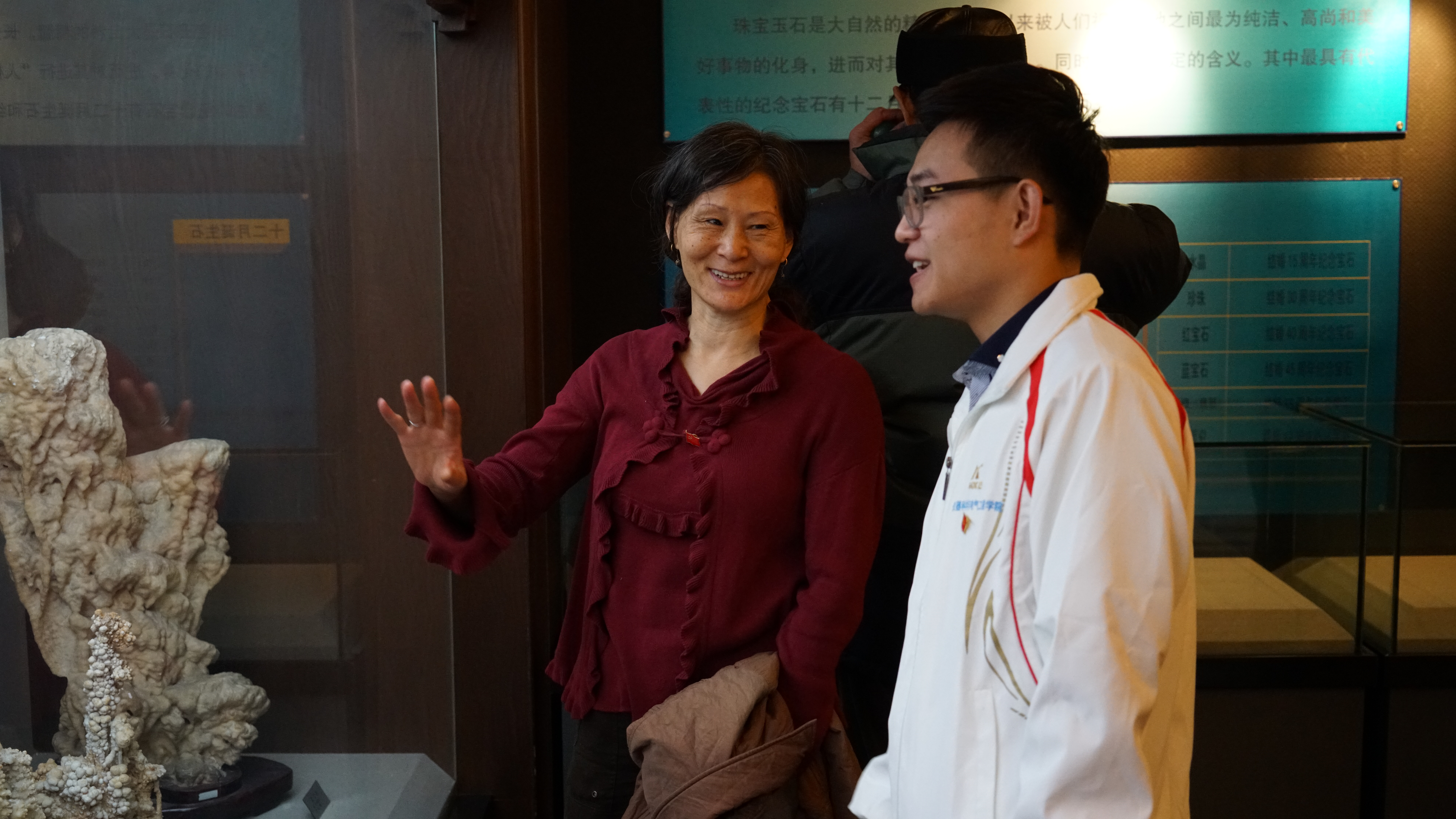 青年党员作为讲解员,为老党员们细心介绍博物馆的历史发展以及博物馆中的珍贵藏品。