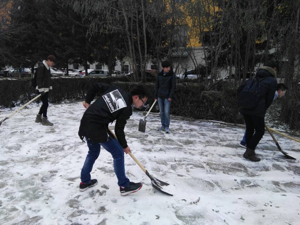 朝阳校区再次开展义务清雪活动。
