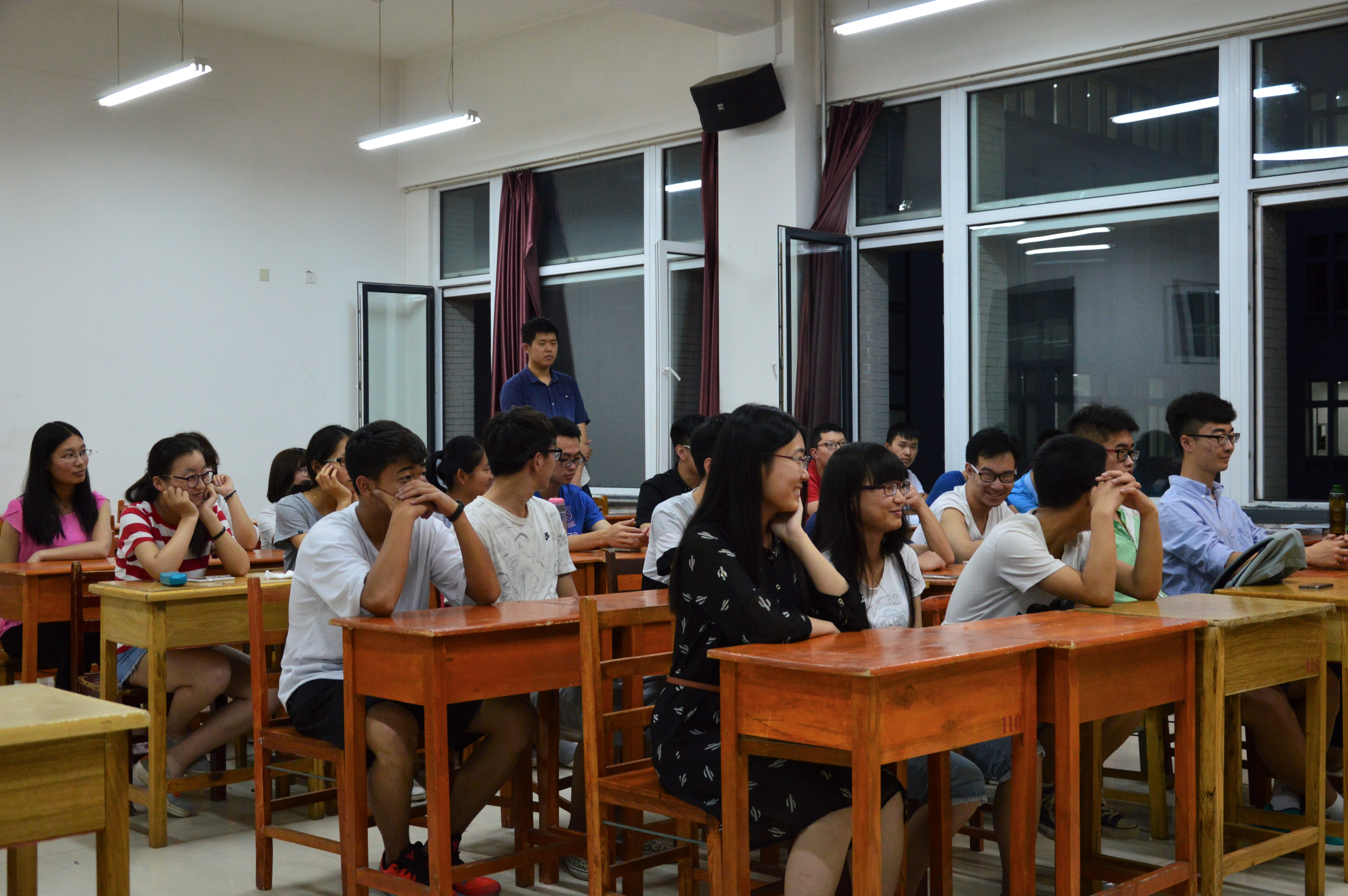 作为本次班会的主持者,2014级袁锦烽学长和陈冠宇学长首先就这一年来大家的学习成绩及各方面活动的参与情况做一总结,让大家深刻意识到哪些是优秀之处,哪些是不足需要改正之处,另外,还针对即将开始的小学期为大家提供多种建议,述明其重要意义。随后由2015级同学们就自己迷茫与否,何处迷茫展开一番激烈的讨论并进行台前发言,大多数同学即使步入大学,也未曾荒废学业,成绩蒸蒸日上,在学习之余,也对自己的将来有所打算。班会结束之前,学长们对保研,直博,考研等方面的问题做了统一讲解,让2015的学生们认识到大学四年应如何高效的度过。