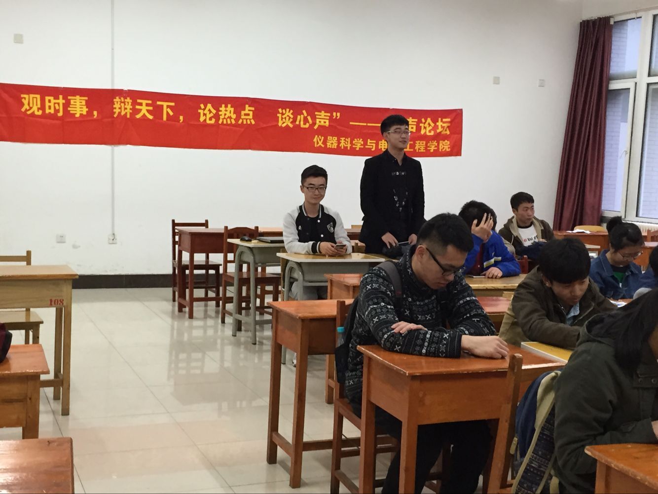 本次论坛就近期饱受争议的“朝鲜核试验”展开讨论。首先,主持人师晨洋简单介绍了本次活动的主题并阐述了自己对这一问题的看法。随后,大家一起观看了相关视频并展开了热烈讨论,与会同学从不同角度出发,分析了问题的本质,表达出自己的想法。其中以毛瑞明同学的观点较为深刻,引人深思。他认为:“朝鲜不顾世界各国反对,坚持核试验,给本国和包括中国在内的邻国带来了核辐射的风险,同时也阻碍了与周边及世界各国的交流与合作,只能引起地区恐慌。”。会议的最后,主持人概括总结了活动内容,本次活动圆满结束。