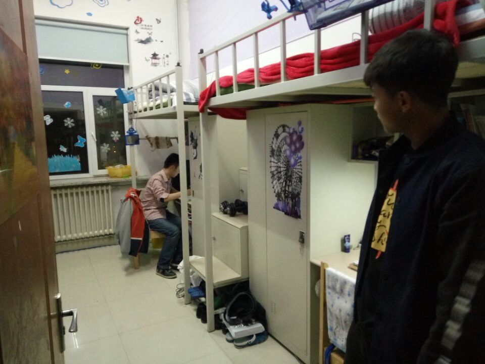 2015级辅导员与学生会生活部相关人员对北苑一公寓中的2015级寝室进行了本学期第2次联合检查。此次安全卫生检查包括以下内容:室内有无私拉乱接电源电线和使用违章电器行为;室内是否干净整洁,生活用品摆放整齐;门窗是否洁净,有无附着灰尘等9项检查指标。检查过程中,张昊宇老师和学生会生活部相关人员对各个寝室安全卫生情况进行了评分,张老师对卫生干净整洁、装扮优雅美观的寝室进行了表扬;对存在的问题的寝室提出了整改方案。他号召大家将寝室作为自己的小家,像对待家人一样对待自己的同学,营造出温馨融洽的寝室氛围。本次检查共历时1个小时,通过寝室检查可以发现,2015级寝室无私拉乱接电源电线和使用违章电器行为,地面基本洁净,整体状况良好。但仍普遍存在窗台堆积杂物、附着灰尘等问题,个别寝室不注意通风,造成室内空气不清新的情况。