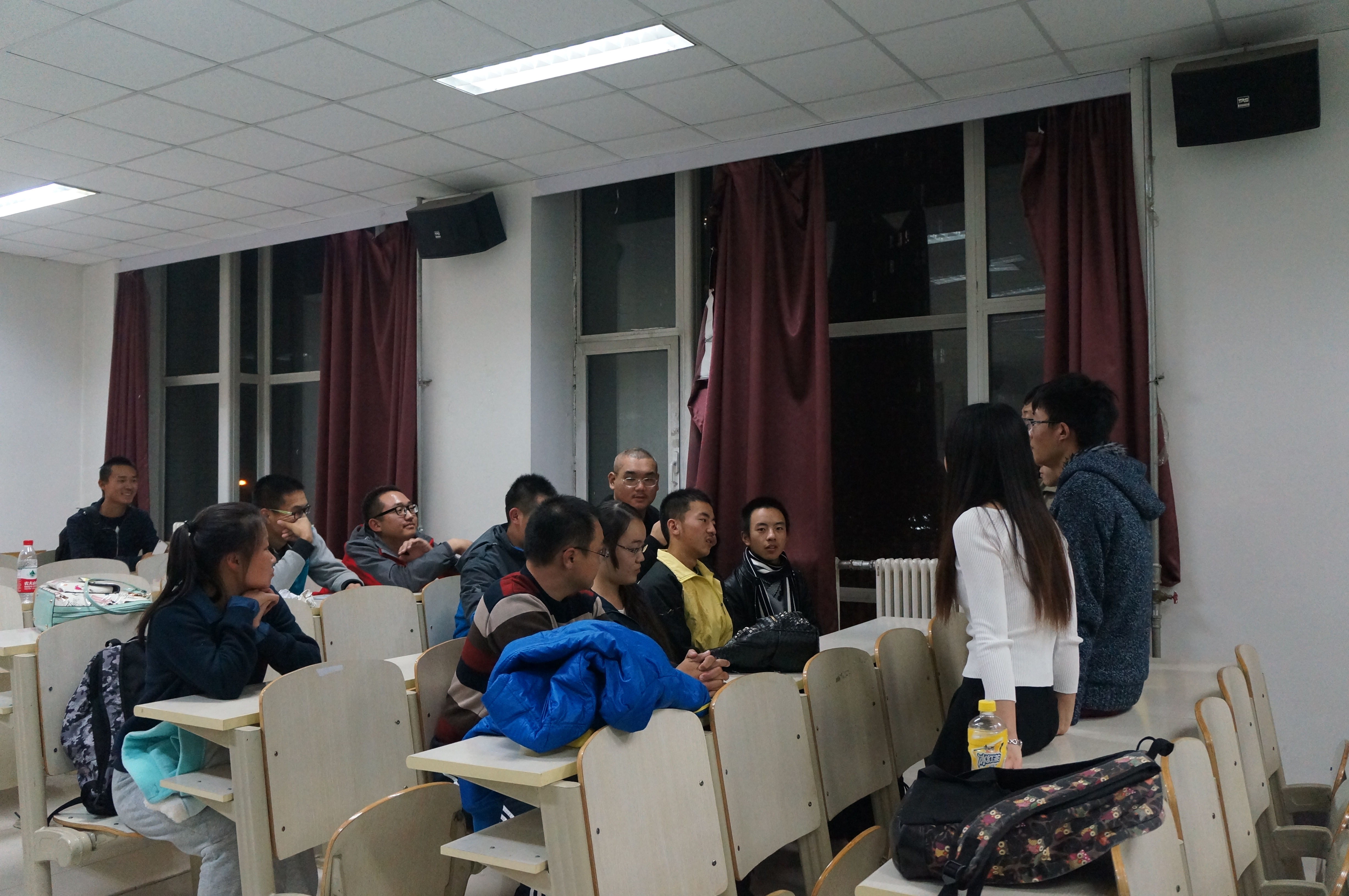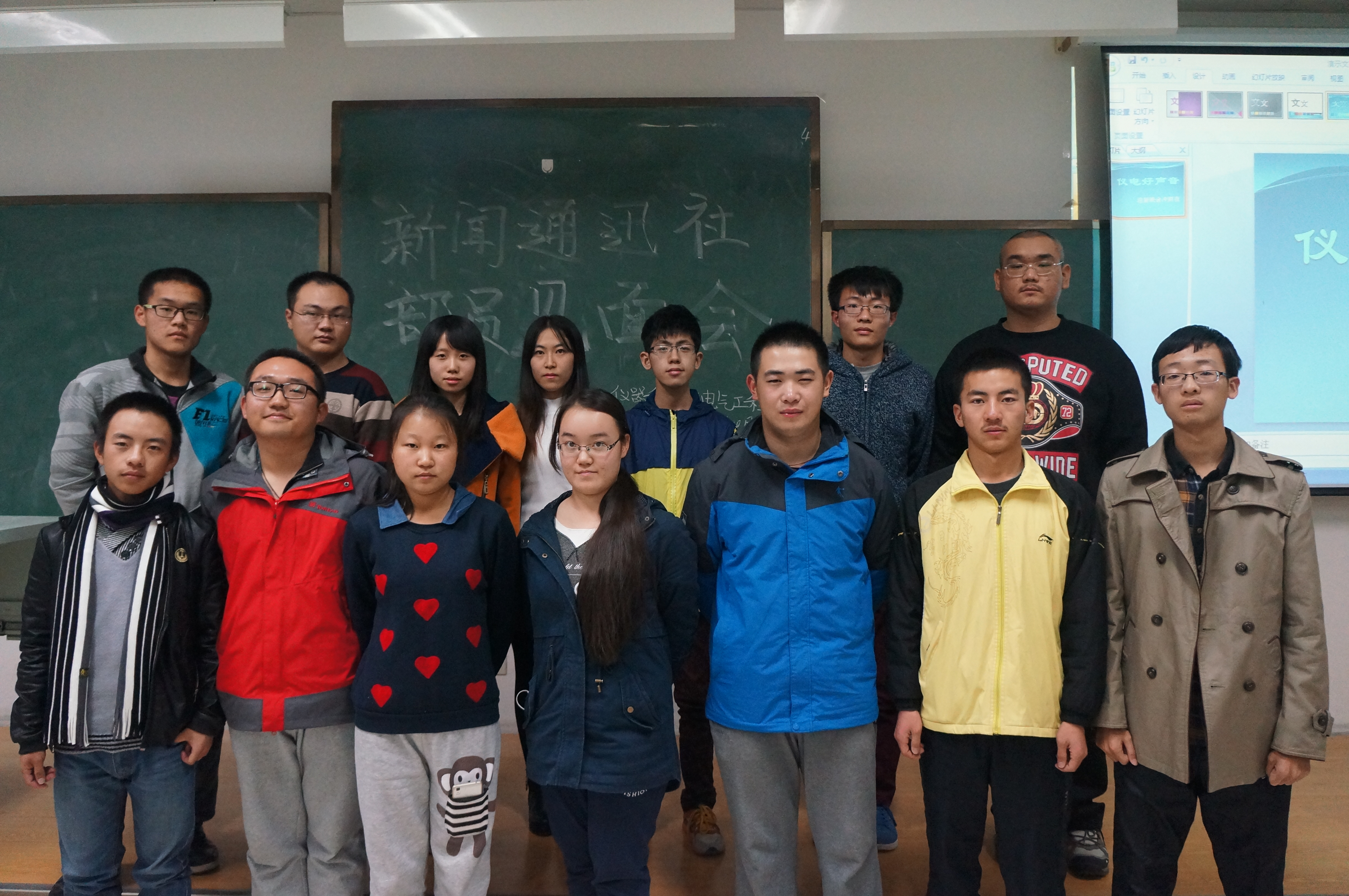 分团委新闻通讯社于2015年10月25日17:00在李四光楼208室举办了全体部员见面会。新闻通讯社社长任晓闯,副社长陈乾、仇铭婕,各位副部长以及全体新部员参加了此次活动。