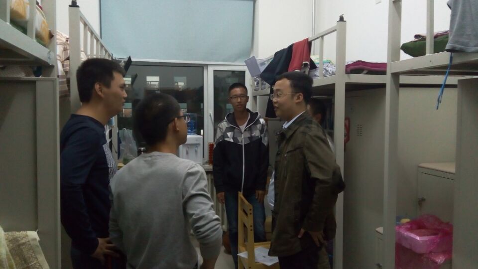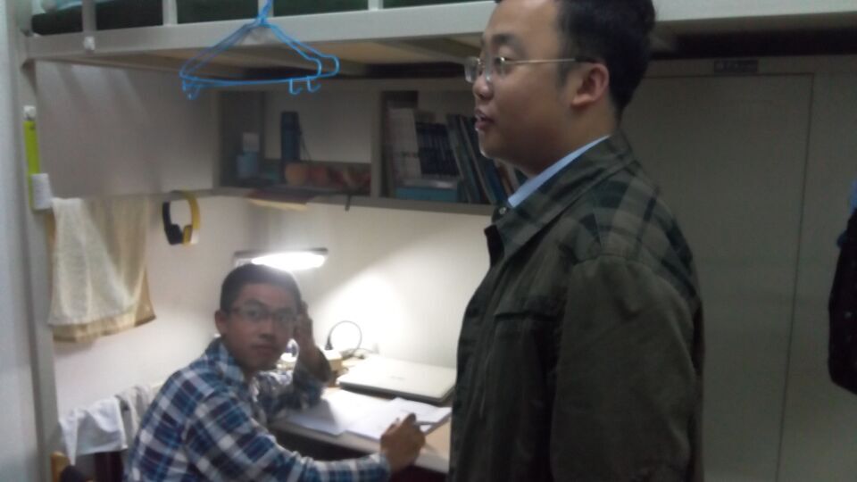 新生辅导员张昊宇老师一一走访各宿舍与同学们进行亲切交谈。张老师细心地询问同学们今天的节日行程以及对新学习生活的看法,大多数同学家在异地,张老师嘱咐同学们一定要给父母长辈们带去节日祝福和问候。同学们轻松地与老师交流自己的学习情况、寝室生活,并提出自己的未来展望,张老师觉得很欣慰。在走访寝室时,看到有些同学节日期间网游娱乐,老师还幽默地和同学们讨论游戏术语,同时叮嘱同学适当娱乐,切勿耽误正常的上课学习。临走前,张老师还不忘叮嘱同学们要注意室内通风,天气转冷多添衣物。在老师和新同学的交谈中,看不出代沟与陌生,只有轻松和融洽。同学们都十分感谢辅导员老师的中秋祝福,让他们感受到如家的温暖。
