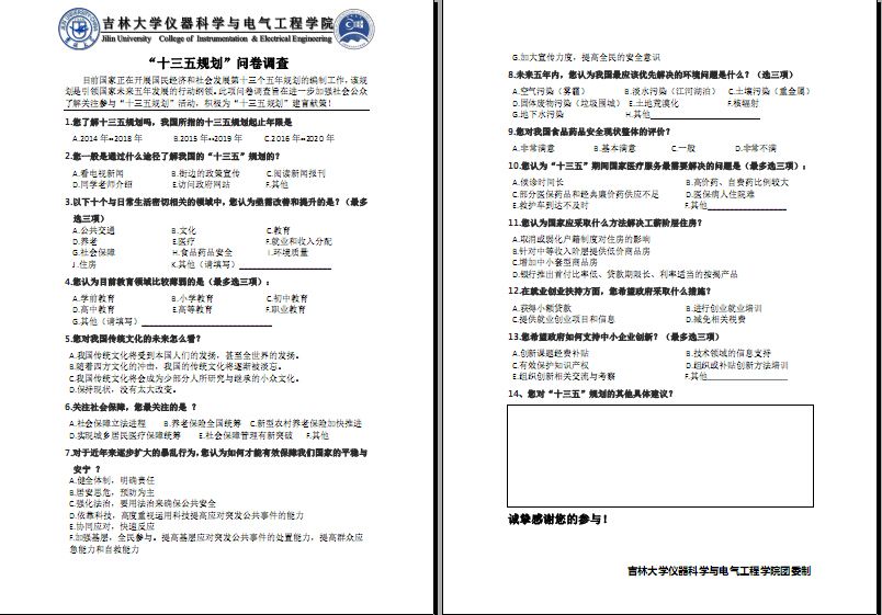 团委组织成立了“东北振兴发展”大学生社会实践调查团并查阅相关资料,召开前期组织动员活动,并且于1月下旬,完成了最终调研问卷。问卷涉及文化教育、公共交通、医疗卫生、环境质量,住房、养老与社会保障、就业与收入分配等百姓热切关注的焦点问题。此次建言献策调研活动通过实地问卷调研的形式,得到基层群众关于十三五规划的期望与意见,并以此作为第一手资料,形成有内容、有层次、有逻辑的调研报告。按照调研进度安排,污污漫画
