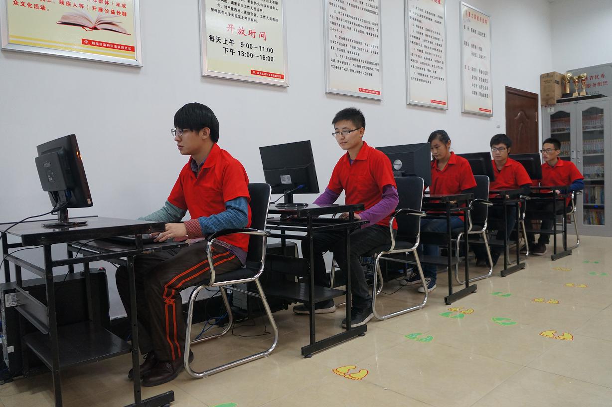 志愿者于当天早晨8:00准时到达社区办事处数字阅览室,铁路社区党支部书记为志愿者介绍了此次活动的目的:一是为了让更多的居民走出家门,了解网络知识,主动参与到社区开展的各项活动中来;二是搭建一个平台,帮助社区居民了解如何使用绿色网吧上网查阅资料,以此丰富社区居民的课余生活,共建幸福家园。随后,志愿者开始帮助社区工作人员布置绿色网吧,搭建绿色网吧社区平台,活动顺利而有序地进行。经过所有工作人员和志愿者的共同努力,本次“共建绿色网吧”活动取得圆满成功。