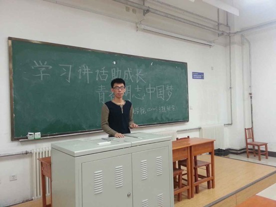 团委组织策划了“生声论坛”系列活动。2014年5月26日下午,第十一期“生声论坛”活动以“学习讲话助成长,青春明志中国梦”主题在中心校区李四光楼111教室举行。参加活动的人员有学院2012级三班全体成员及院学生会秘书部全体成员。