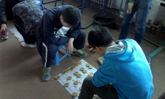 为积极响应落实国家“阳光体育”精神号召,按照团中央《2014 年全国高校共青团工作要点》相关要求,积极启动和广泛开展大学生“走下网络、走出宿舍、走向操场”主题群众性课外体育锻炼活动,丰富校园文化生活,为象棋爱好者们提供一个展示兴趣、互相交流的良好平台,我校于2014年4月26日在中心校区体育长廊举办了一场别开生面的象棋比赛。污污漫画