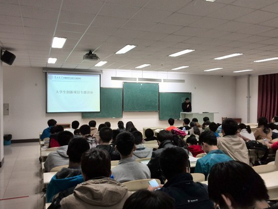 团委于4月16日晚在中心校区李四光楼206教室召开了大学生创新创业项目专题讲座。讲座由学院2010级优秀学生代表张发聪同学主讲,学院2013级全体同学参加了本次讲座。