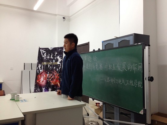 本次活动由学生会秘书部承办,伴随着热烈的掌声,主持人宣布活动开始。首先李梁冰同学上前演讲,他在分析了曾经最受欢迎的操作系统Windows XP系统将要退出历史舞台的悲剧之后,向大家介绍了一些最新最前沿的科技时事,让同学们大开眼界。接着,范頔同学向大家介绍了目前校园内主要的科技创新竞赛,说明了这些竞赛对促进大学生职业发展的重要作用。随后,其他同学也纷纷围绕这一主题发表了自己的看法,整个活动过程中同学们热情高涨,活动历时一个小时圆满成功。