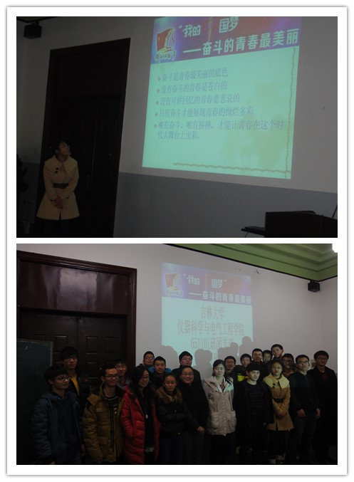主题班会于12:30准时开始,共分为三个环节。在第一个环节中,班长赵美聪同学通过PPT展示,阐明了“只有奋斗才能展现青春的绚烂多彩”的观点,得到了同学们的肯定,同学们都认为唯有奋斗,唯有拼搏,才能让青春在这个时代大舞台上出彩。在第二个环节中,同学们热烈地讨论各自的青春梦想,以及对自己的青春年华的规划。在第三个环节中,同学们共同观看了以“奋斗的青春最美丽”为主题的视频剪辑,视频介绍了几个著名企业家的奋斗历程,使同学们感受到了为了梦想而奋斗、为了梦想做充分准备、为了梦想把握机遇的重要性。最后,同学们一起合影留念,同学们相互鼓劲,相约着为了共同的梦想而奋斗。